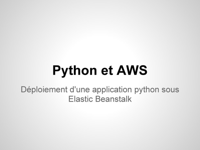 de créer des applications et de les déployer sur AWS, • Lancé en Janvier 2011 avec, initialement Java comme seul language supporté, • Support de python ajouté en Aout 2012.