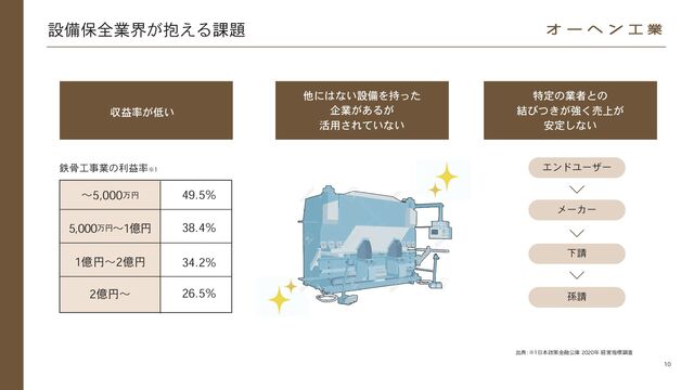 ˔ࣄʹ͔͔ͬͨඅ༻ ˔ࢪ༰ ઃඋอશͷґཔ ࠷దͳύʔτφʔ దͳґཔΛ࣮ࢪ ˔ඞཁͳྔͷࢿࡐΛҰׅͰௐୡ ˔࠷దͳͷґཔ ˔దͳඅ༻ͰͷऔҾΛ࣮ݱ ˔҆ఆతͳҊ݅ͷڙڅ ґཔ ɾ ใͷڞ༗ ˔อશܭը ɾ ෦ަमસཤྺ ˔ઃඋશମͷใ ɾ ઃඋͷྼԽঢ়گ ઃඋ ϏδωεϞσϧ మॴ ɾ Ճձࣾ ύʔτφʔاۀ ˔อશΛߦ͏·Ͱͷ ɹਓత༨ྗ͕ͳ͍ ˔ਓखෆ ˔ઃඋอશίετͷ૿Ճ ˔อશٕज़͕ ɹܧঝͰ͖͍ͯͳ͍ ՝ ˔ऩӹ ˔ಛఆͷۀऀʹґଘ ˔ࣗࣾͷڧΈΛ ɹѲ͍ͯ͠ͳ͍ χʔζʹ߹Θͤͨ࠷దͳ ϓϥϯΛ͝ఏҊ ނোͷ༧ஹΛใࠂ͠ɺ ঢ়گʹ͋ΘͤͨࣄΛఏڙ ˔దͳλΠϛϯάͰͷࣄͷ࣮ࢪ ˔ඞཁͳλΠϛϯάͰͷ෦ڞ༗ ൃऀ Ճ Ձ ൃֹۚʹ࡞ࢪͷඅ༻ʴՃՁ डऀ ࡞ࢪͷඅ༻ Φʔϔϯ ۀ