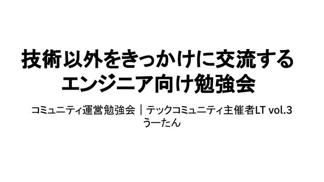 技術以外をきっかけに交流する エンジニア向け勉強会 コミュニティ運営勉強会|テックコミュニティ主催者LT vol.3 うーたん