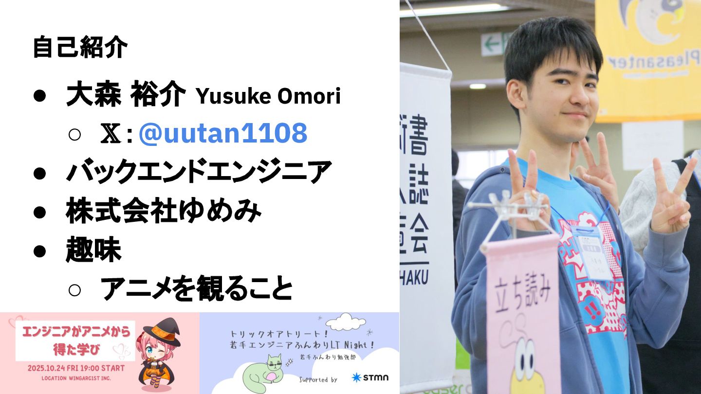 #DevRelKaigi 自己紹介 • 大森 裕介 Yusuke Omori ◦ 𝕏:@uutan1108 •