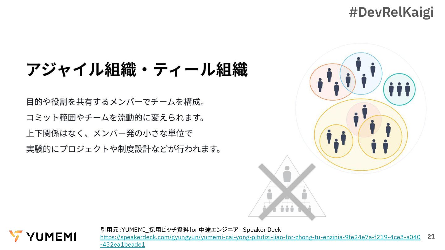 #DevRelKaigi 21 引用元:YUMEMI_採用ピッチ資料 for 中途エンジニア - Speaker Deck https://speakerdeck.com/gyungyun/yumemi-cai-yong-pitutizi-liao-for-zhong-tu-enzinia-9fe24e7a-f219-4ce3-a040 -432ea1beade1