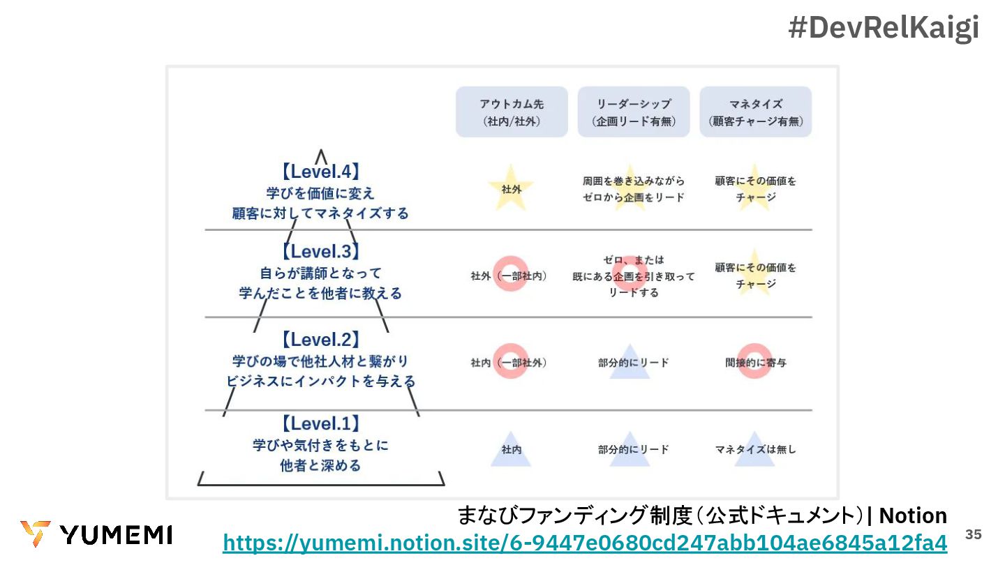 #DevRelKaigi 35 まなびファンディング制度(公式ドキュメント) | Notion https://yumemi.notion.site/6-9447e0680cd247abb104ae6845a12fa4