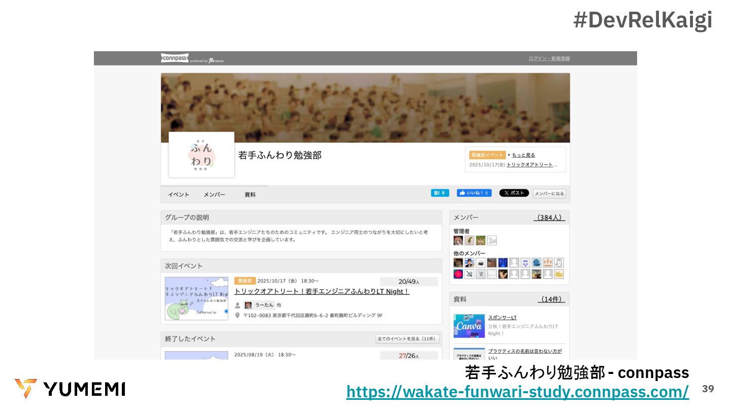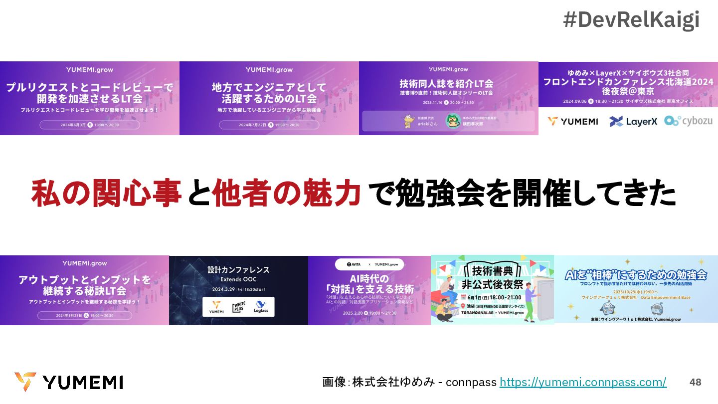 #DevRelKaigi 私の関心事 と他者の魅力 で勉強会を開催してきた 48 画像:株式会社ゆめみ - connpass https://yumemi.connpass.com/