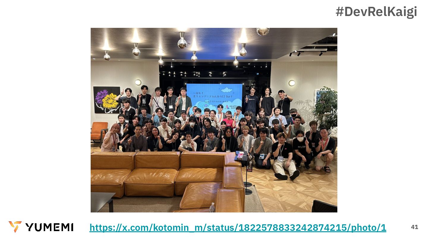 #DevRelKaigi 41 https://x.com/kotomin_m/status/1822578833242874215/photo/1