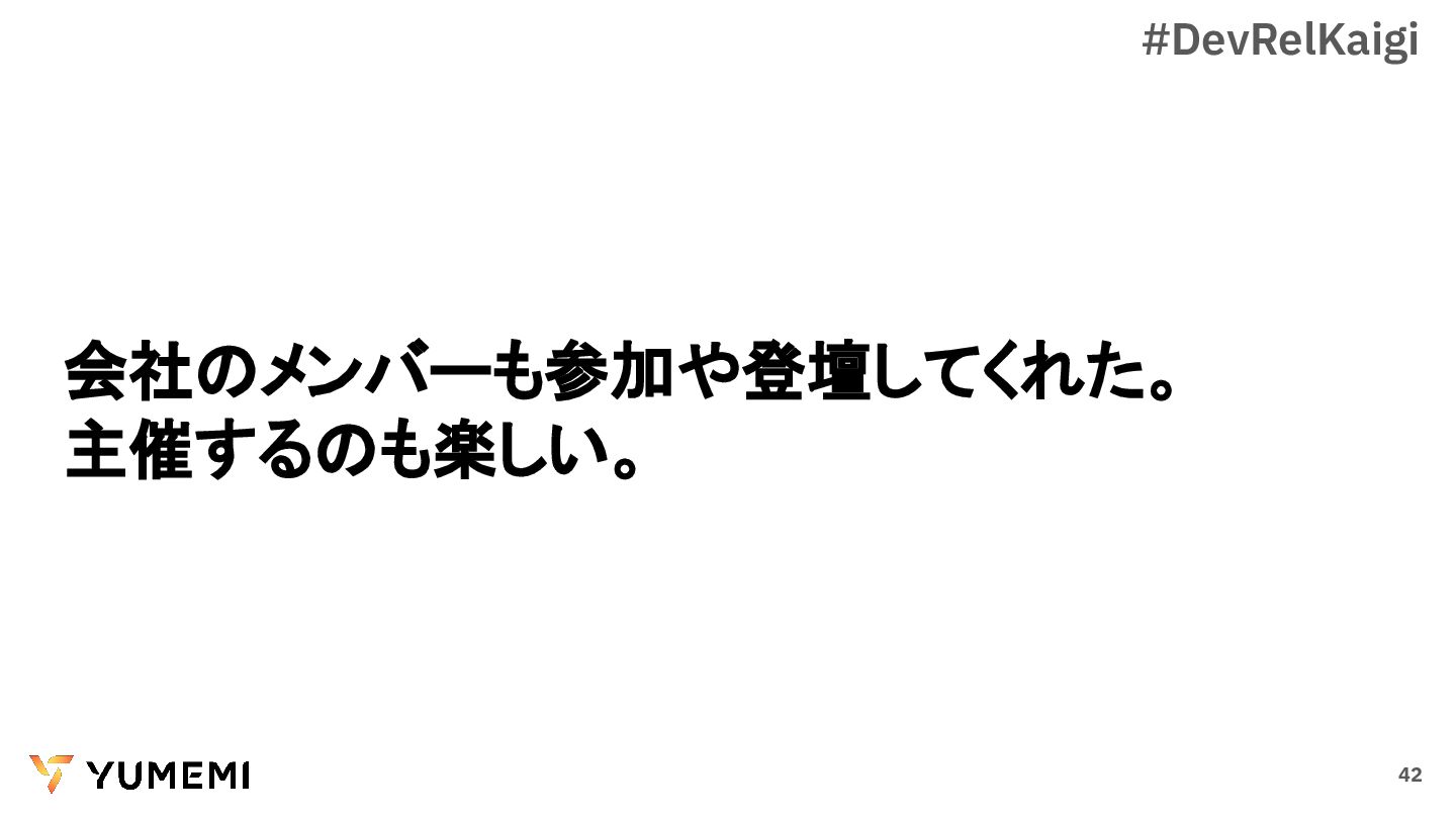 #DevRelKaigi 会社のメンバーも参加や登壇してくれた。 主催するのも楽しい。 42