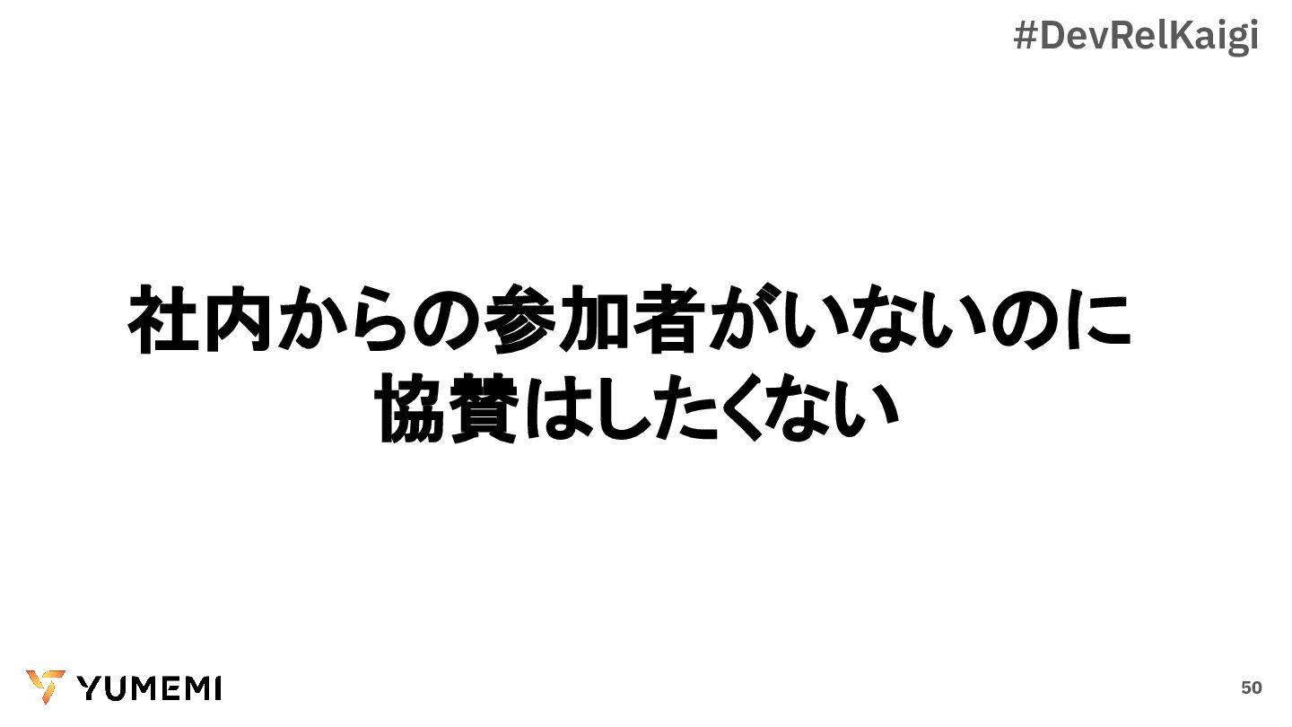 #DevRelKaigi 社内からの参加者がいないのに 協賛はしたくない 50