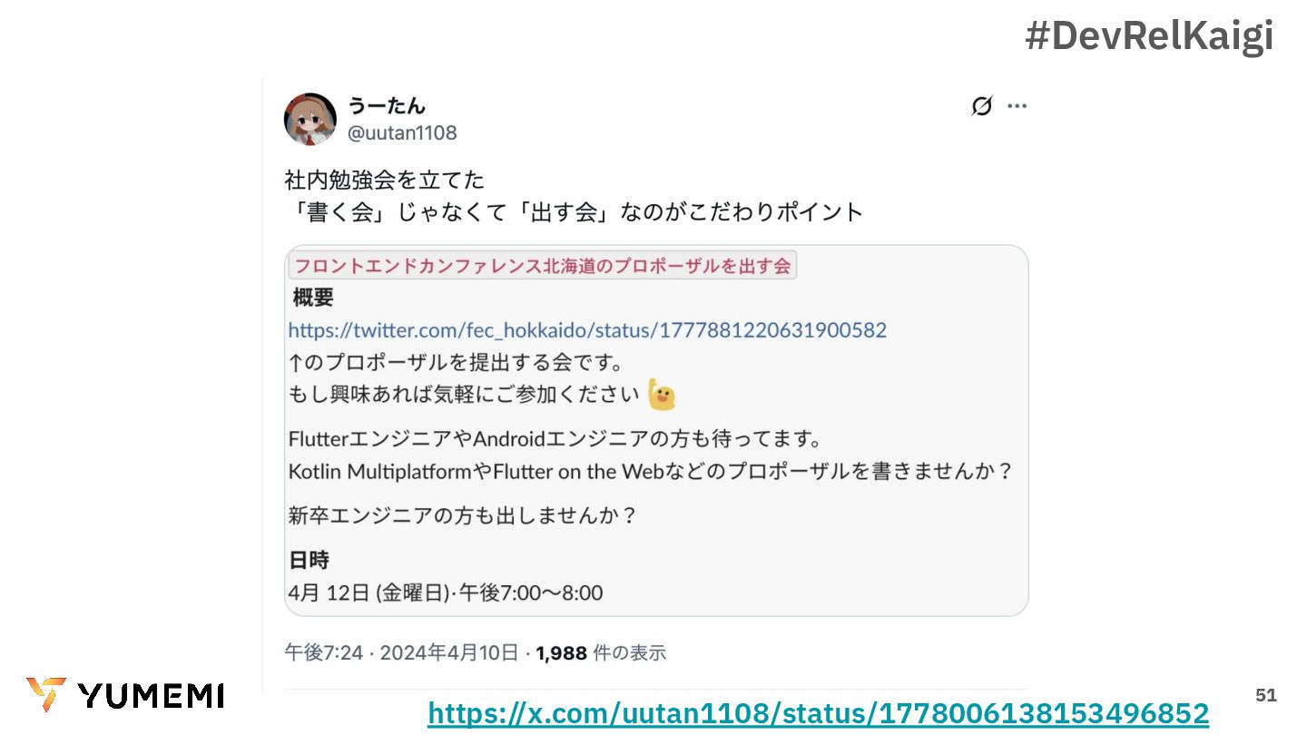 #DevRelKaigi 51 https://x.com/uutan1108/status/1778006138153496852