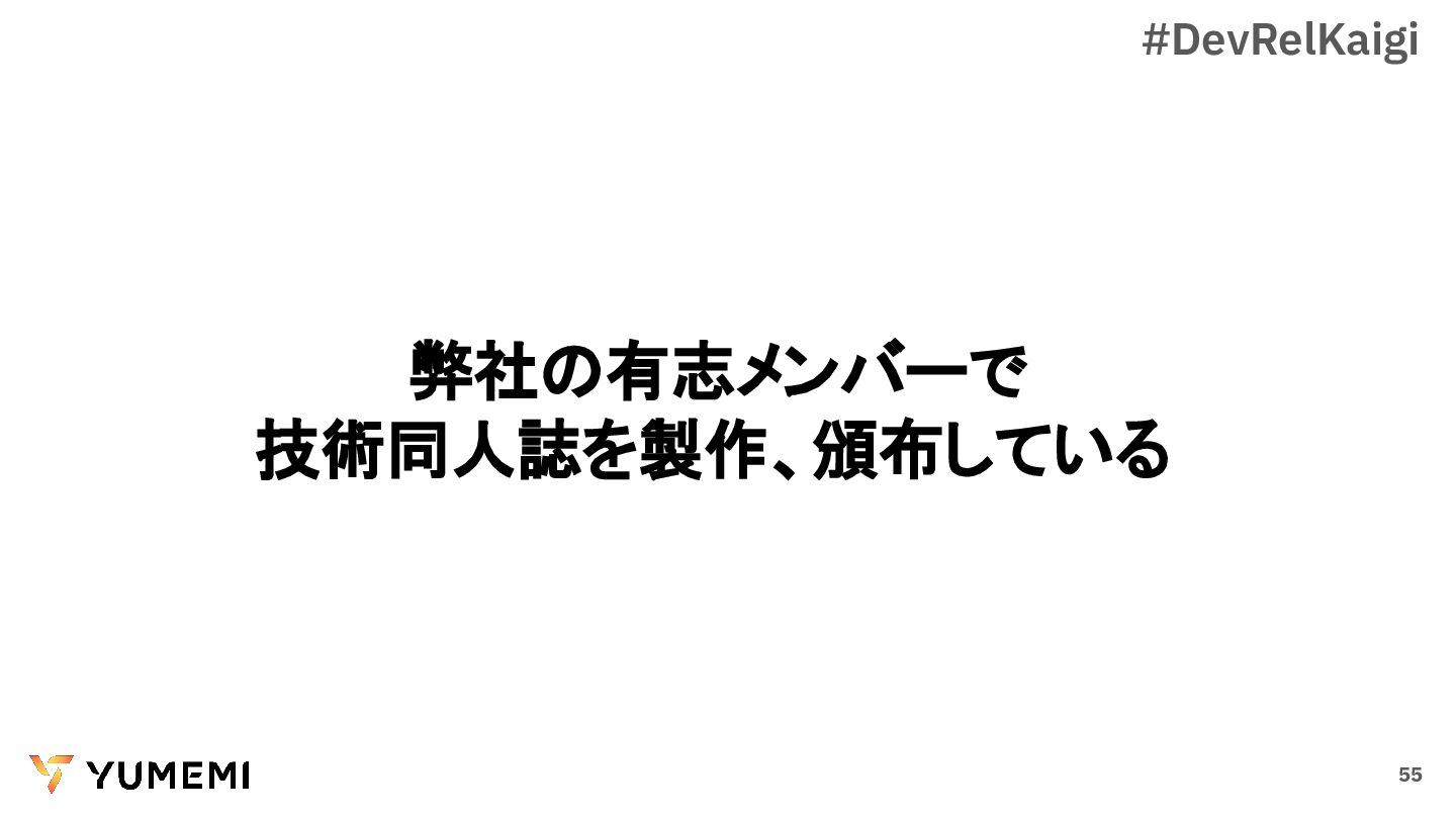 #DevRelKaigi 弊社の有志メンバーで 技術同人誌を製作、頒布している 55