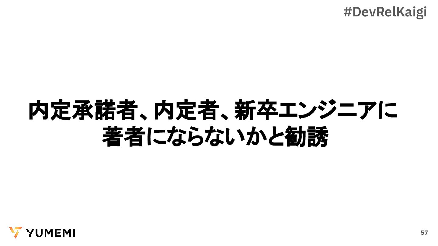 #DevRelKaigi 内定承諾者、内定者、新卒エンジニアに 著者にならないかと勧誘 57