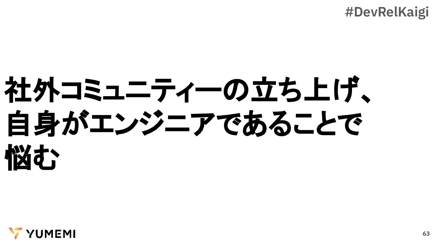 #DevRelKaigi 社外コミュニティーの立ち上げ、 自身がエンジニアであることで 悩む 63