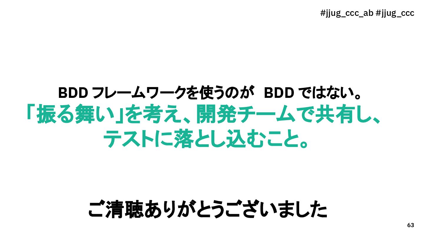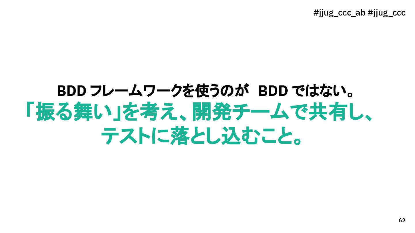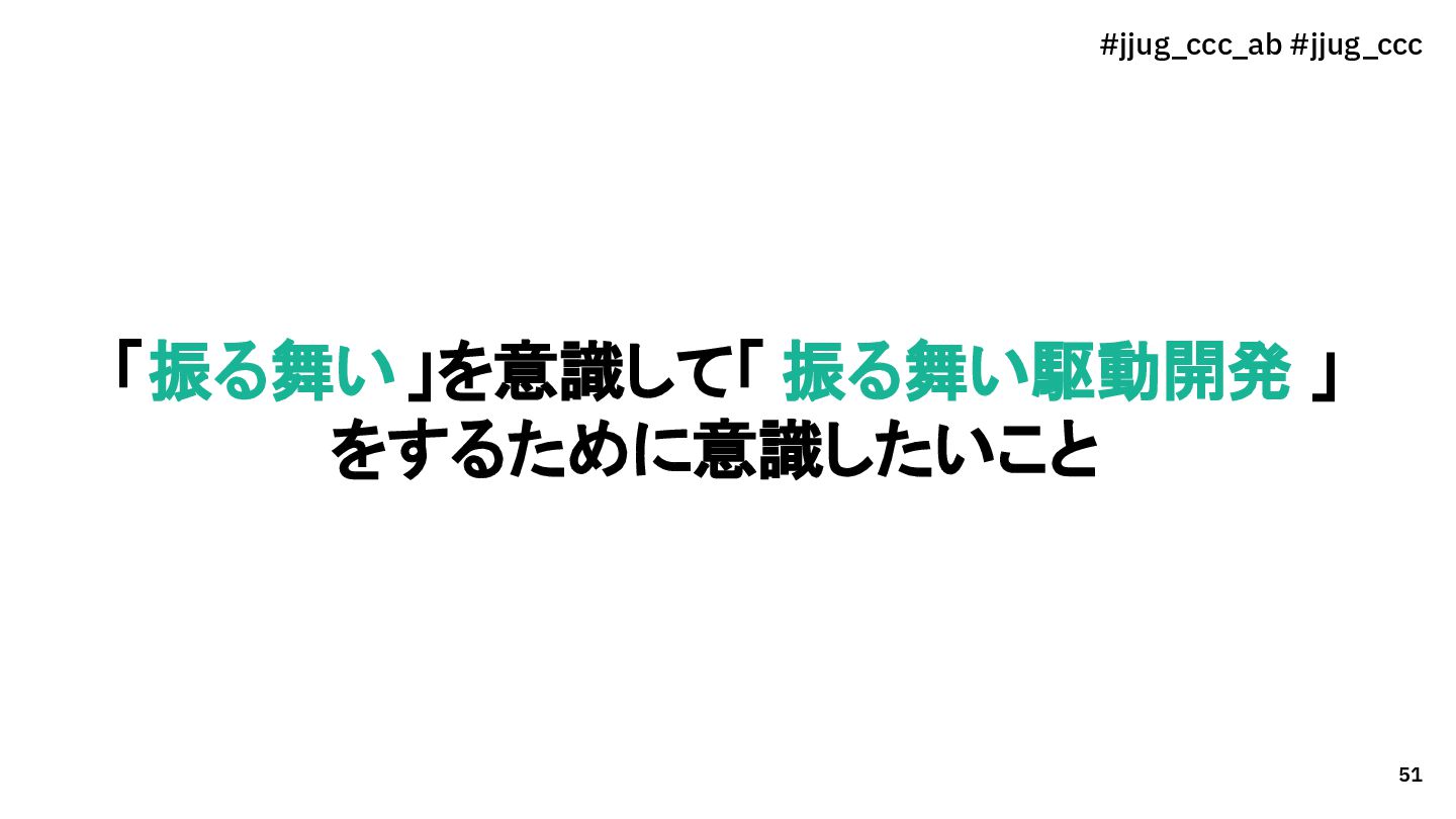• 単体テストでも振る舞いを意識して自然言語で表現 するこ