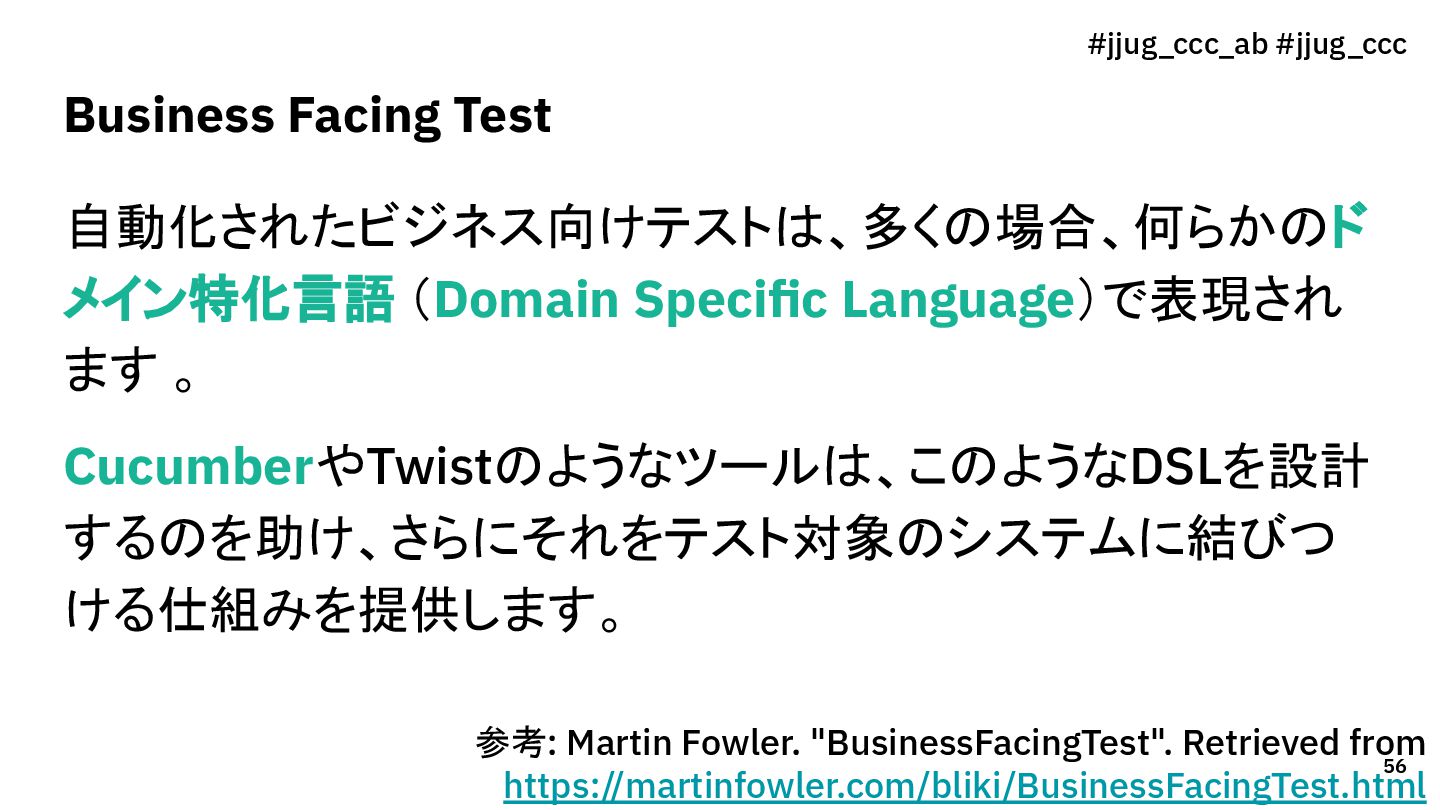 自動化されたビジネス向けテストは、多くの場合、何らかのド メイン特化言語 (Domain Specific Language)で表現され