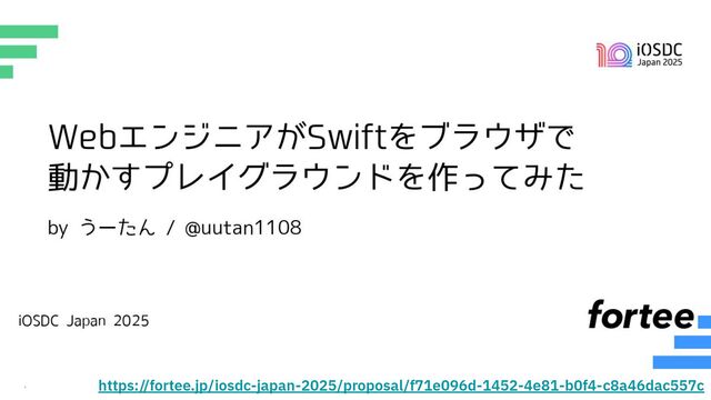 WebエンジニアがSwiftをブラウザで動かすプレイグラウンドを作ってみた by うーたん | トーク | iOSDC Japan 2025 #iosdc - fortee.jp https://fortee.jp/iosdc-japan-2025/proposal/f71e096d-1452-4e81-b0f4-c8a46dac557c