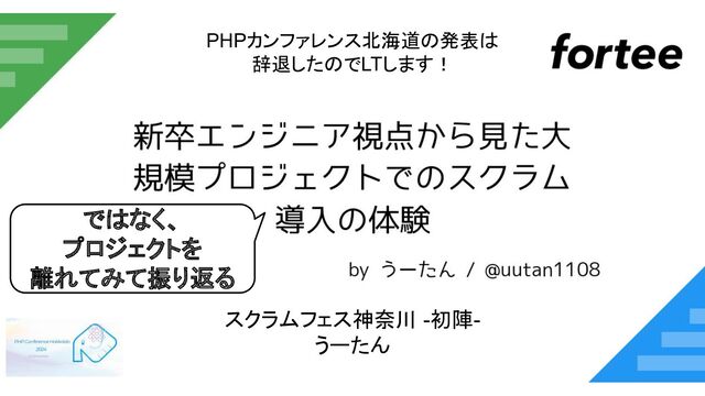 スクラムフェス神奈川 -初陣- うーたん ではなく、 プロジェクトを 離れてみて振り返る PHPカンファレンス北海道の発表は 辞退したのでLTします!