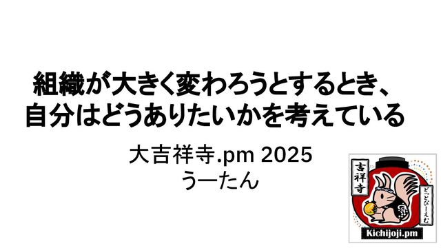 組織が大きく変わろうとするとき、 自分はどうありたいかを考えている 大吉祥寺.pm 2025 うーたん