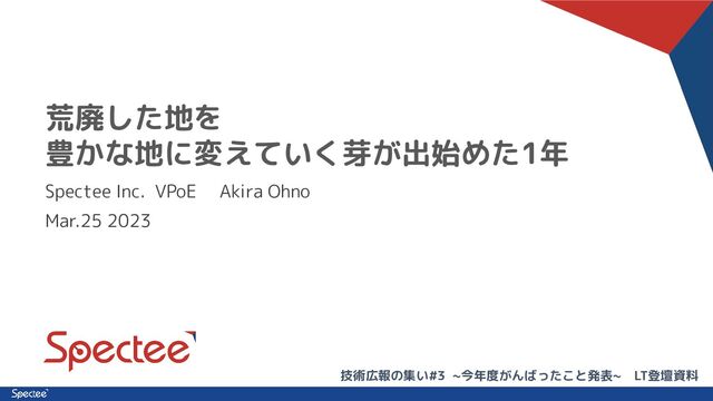 荒廃した地を 豊かな地に変えていく芽が出始めた1年 Spectee Inc. VPoE Akira Ohno Mar.25 2023 技術広報の集い#3