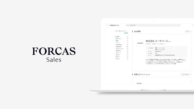 セールスリサーチプラットフォーム『FORCAS Sales』 https://www.uzabase.com/jp/news/forcas-sales-release/ 営業活動で重要な、事前調査を効率化かつ質を向上し、顧客の課題本位な営業を実行することを可能にします。