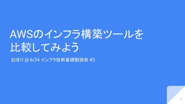 AWSのインフラ構築ツールを 比較してみよう おほり @ 6/24 インフラ技術基礎勉強会 #3 1