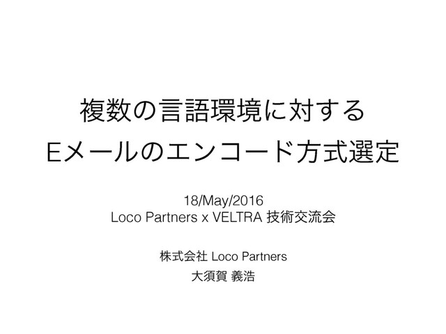 Loco Partners x VELTRA 技術交流会 ( http://connpass.com/event/30968/ )での発表資料 複数の言語環境へ対してメール送信する際に、文字コード・転送エンコードをどうすべきかについて