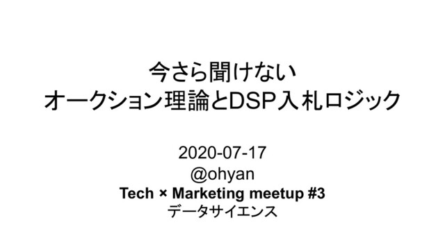 今さら聞けない オークション理論とDSP入札ロジック 2020-07-17 @ohyan Tech × Marketing meetup #3 データサイエンス