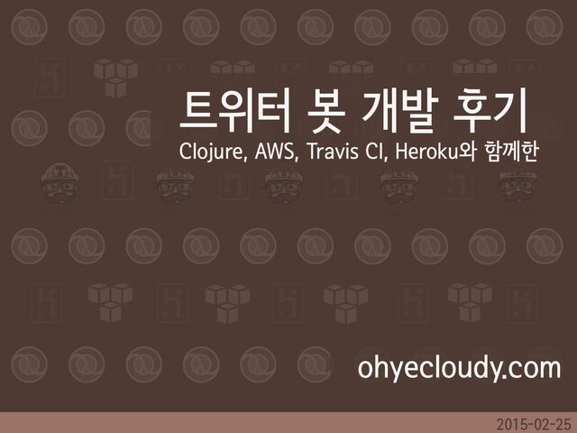 tbot-800 https://github.com/ohyecloudy/tbot-800 tbot-quote-builder https://github.com/ohyecloudy/tbot-quote-builder 블로그에 쓴 후기 http://ohyecloudy.com/pnotes/archives/1850/