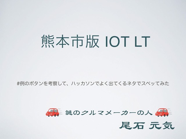 ۽ຊࢢ൛ IOT LT 尾⽯ 元気 謎のクルマメーカーの⼈ ྫͷϘλϯΛߟͯ͠ɺϋοΧιϯͰΑ͘ग़ͯ͘ΔωλͰεϕοͯΈͨ