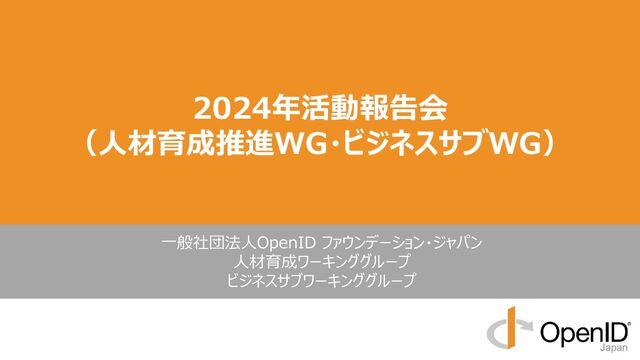 2024年活動報告会 (人材育成推進WG・ビジネスサブWG) ⼀般社団法⼈OpenID ファウンデーション・ジャパン ⼈材育成ワーキンググループ ビジネスサブワーキンググループ