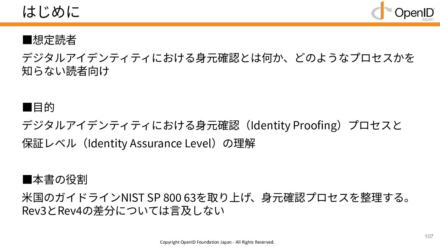 110. Copyright OpenID Foundation Japan - All Rights Reserved. Identity Proofing(⾝元確認)とは?