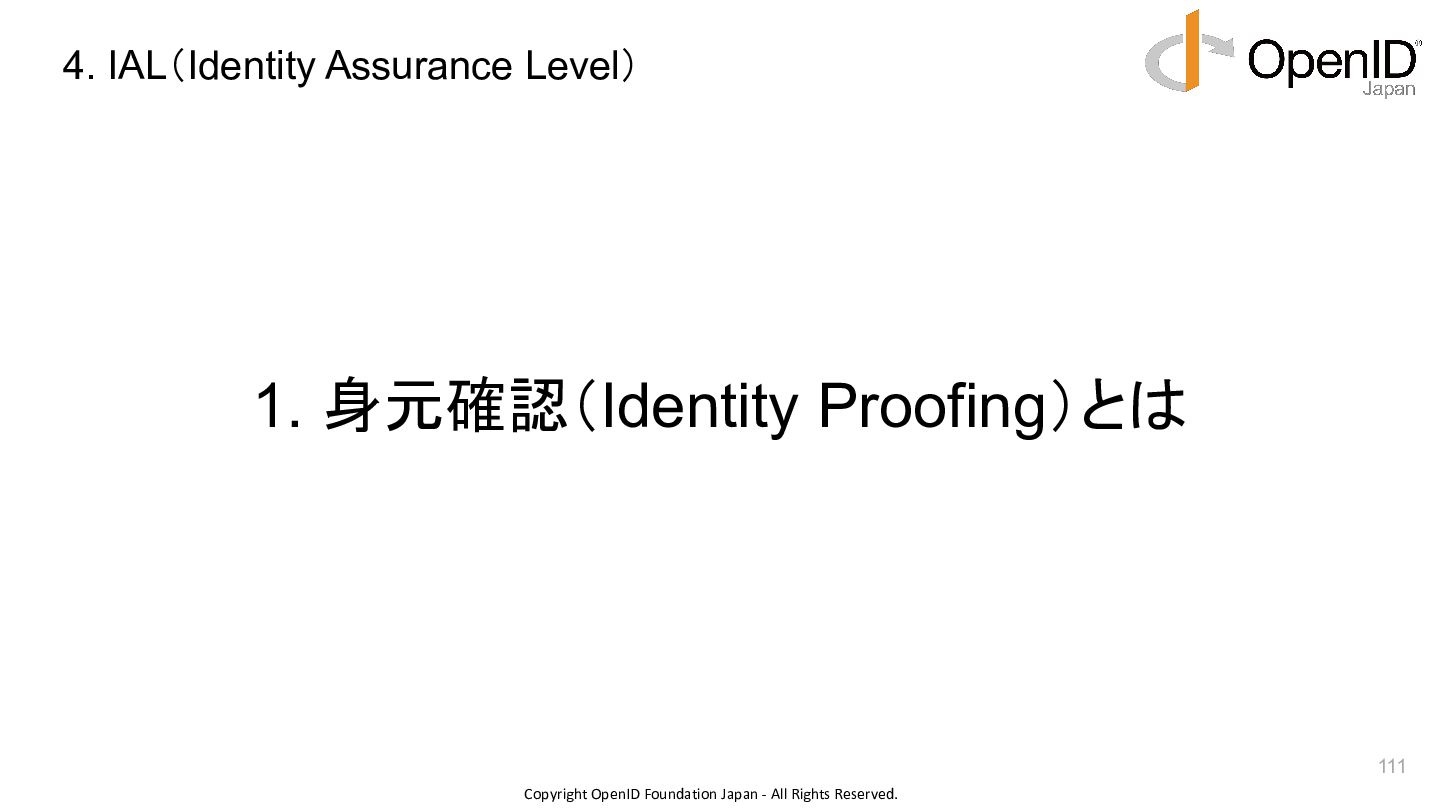 111. Copyright OpenID Foundation Japan - All Rights Reserved. IAL(Identity Assurance