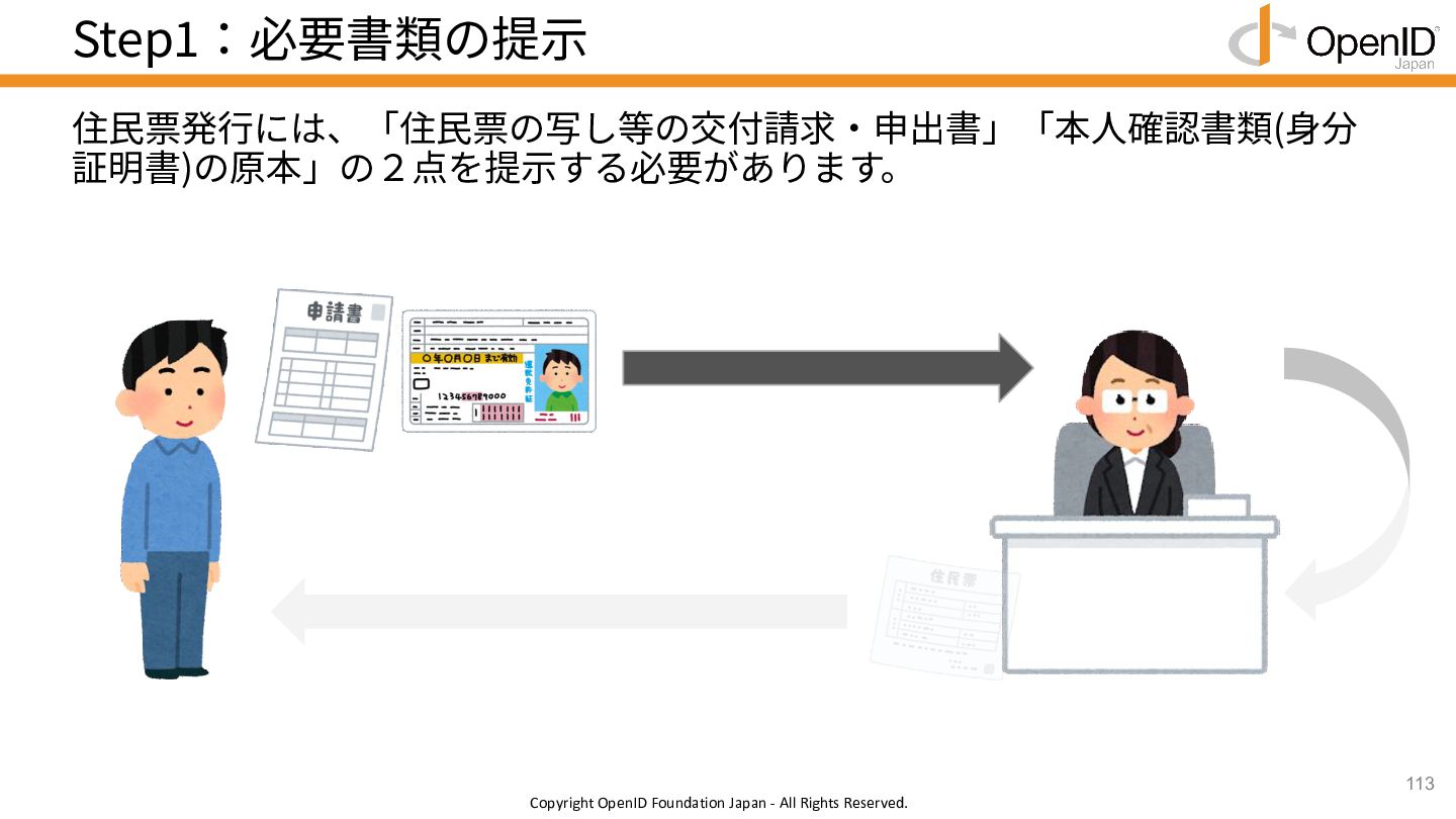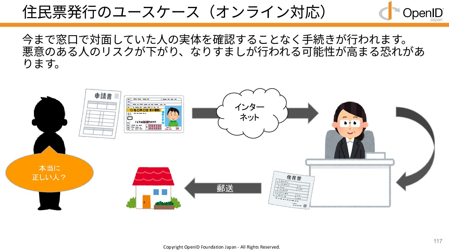 107. Copyright OpenID Foundation Japan - All Rights Reserved. 住⺠票発⾏のユースケース(オンライン対応) 117