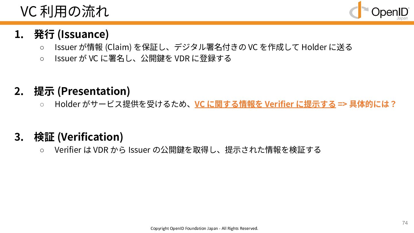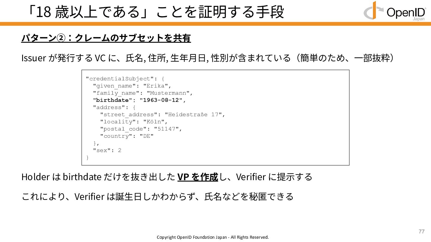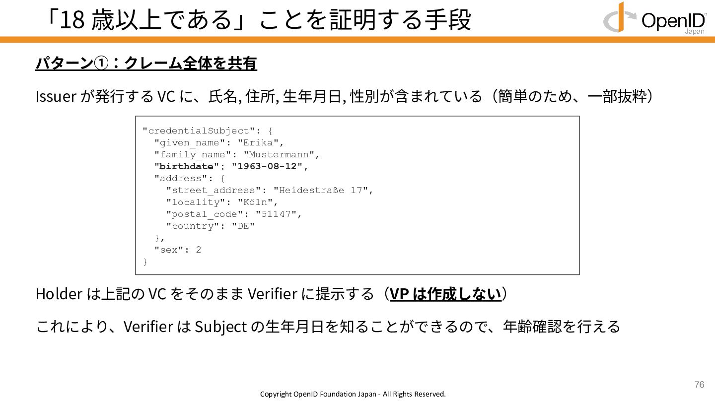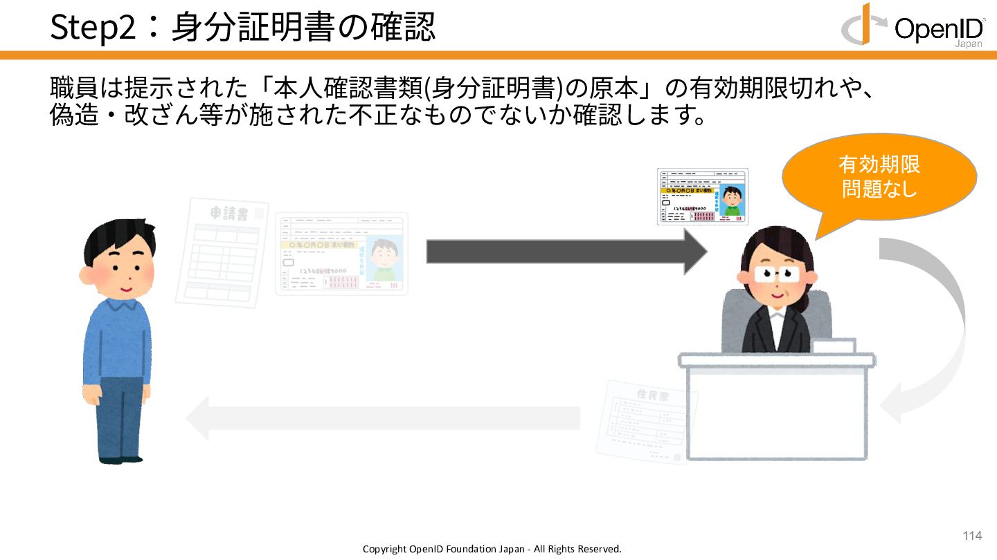104. Copyright OpenID Foundation Japan - All Rights Reserved. Step2:⾝分証明書の確認 114