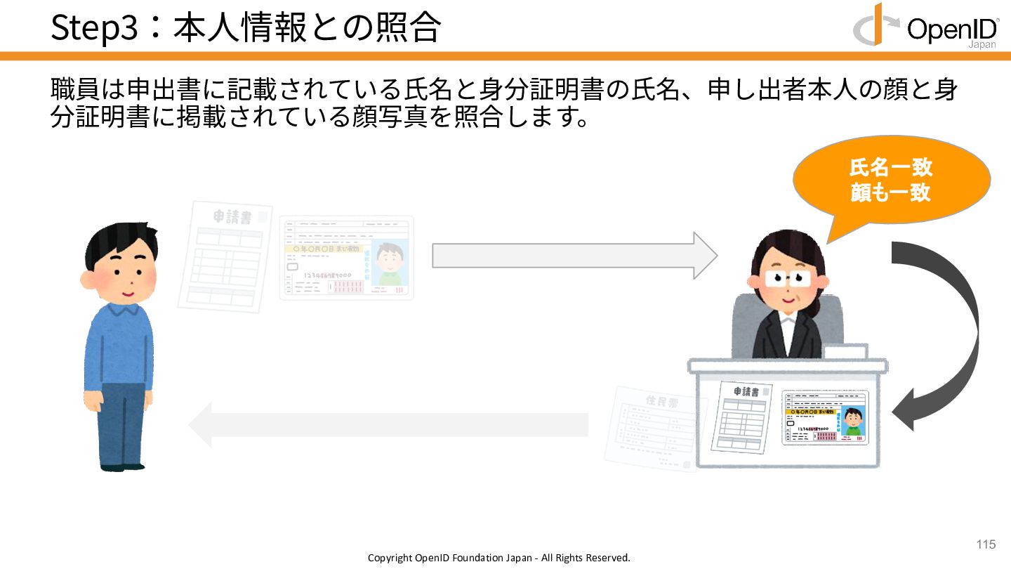 105. Copyright OpenID Foundation Japan - All Rights Reserved. Step3:本⼈情報との照合 115