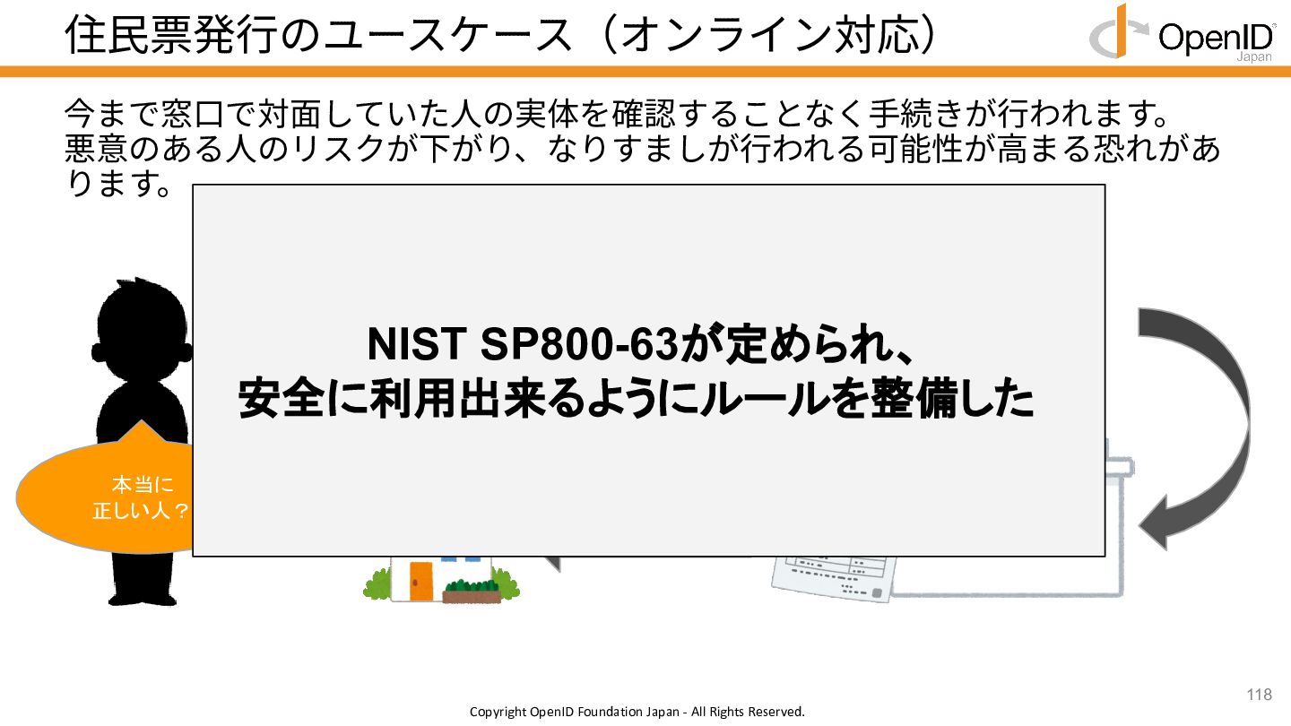 108. Copyright OpenID Foundation Japan - All Rights Reserved. 住⺠票発⾏のユースケース(オンライン対応) 118