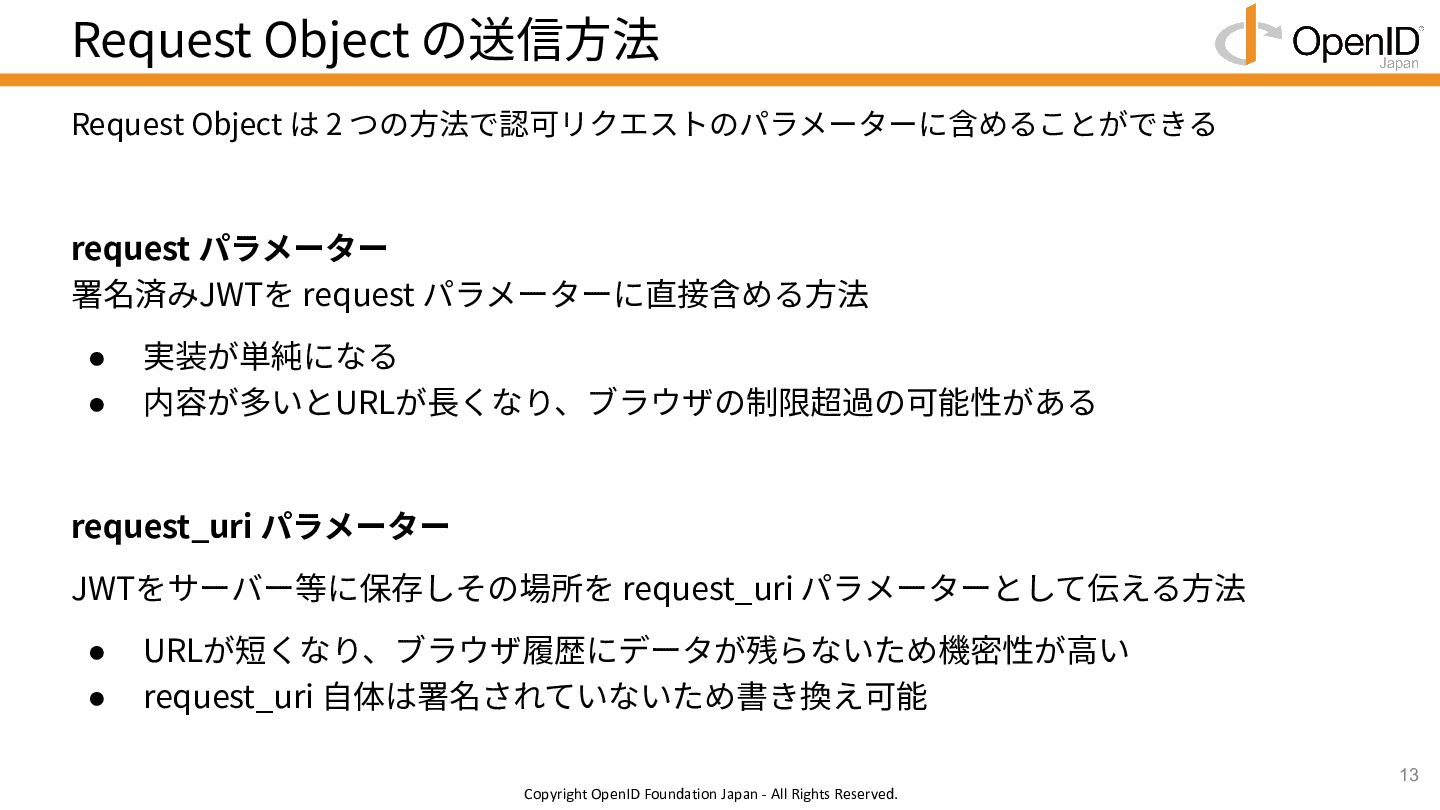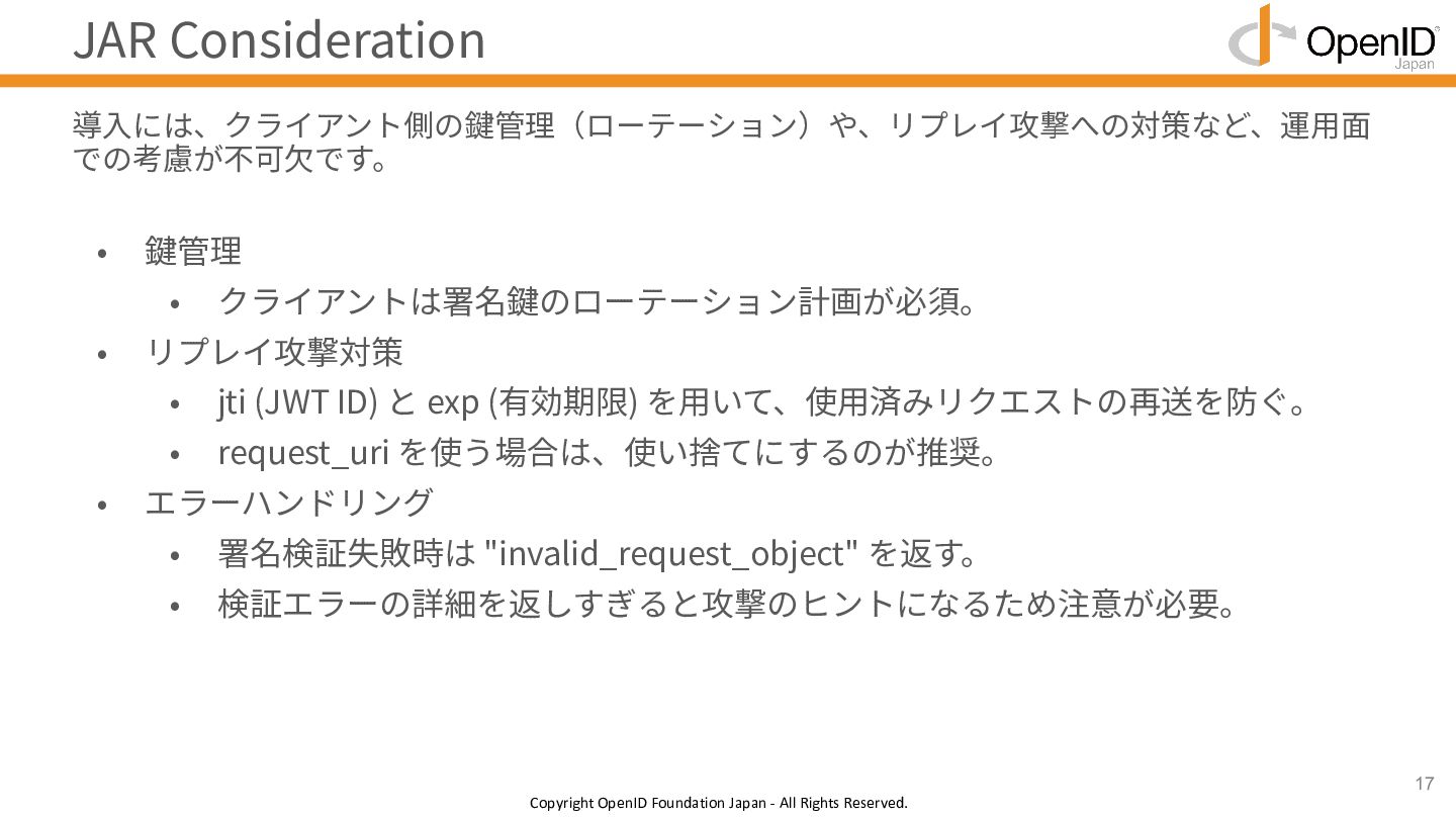 13. Copyright OpenID Foundation Japan - All Rights Reserved. JAR Consideration