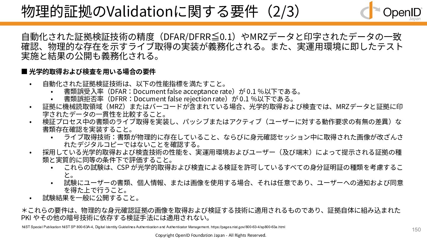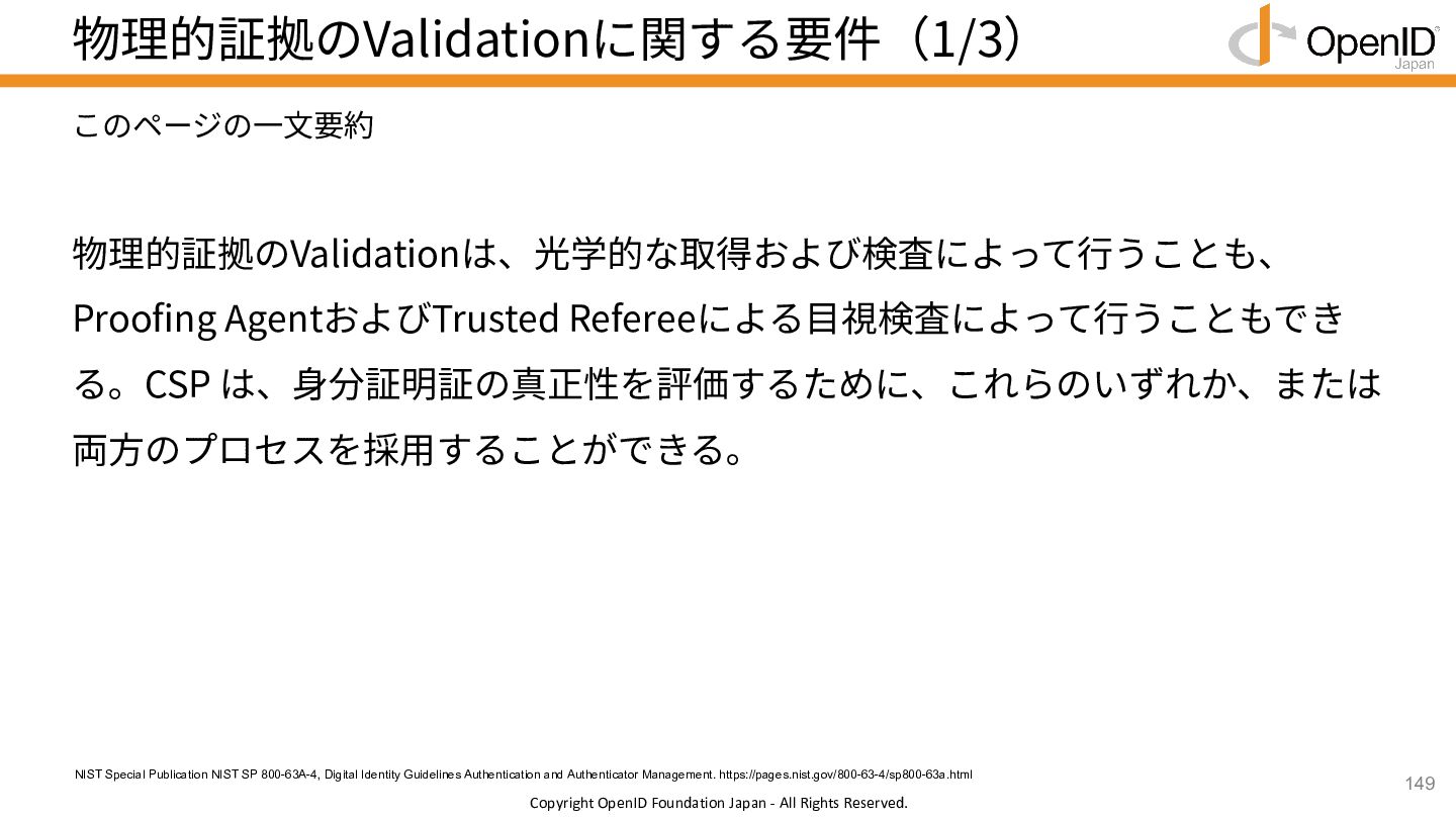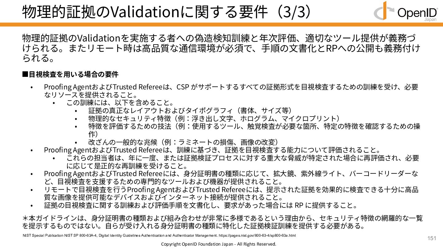 137. Copyright OpenID Foundation Japan - All Rights Reserved. 物理的証拠のValidationに関する要件(1/3) 物理的証拠のValidationは、光学的な取得および検査によって⾏うことも、