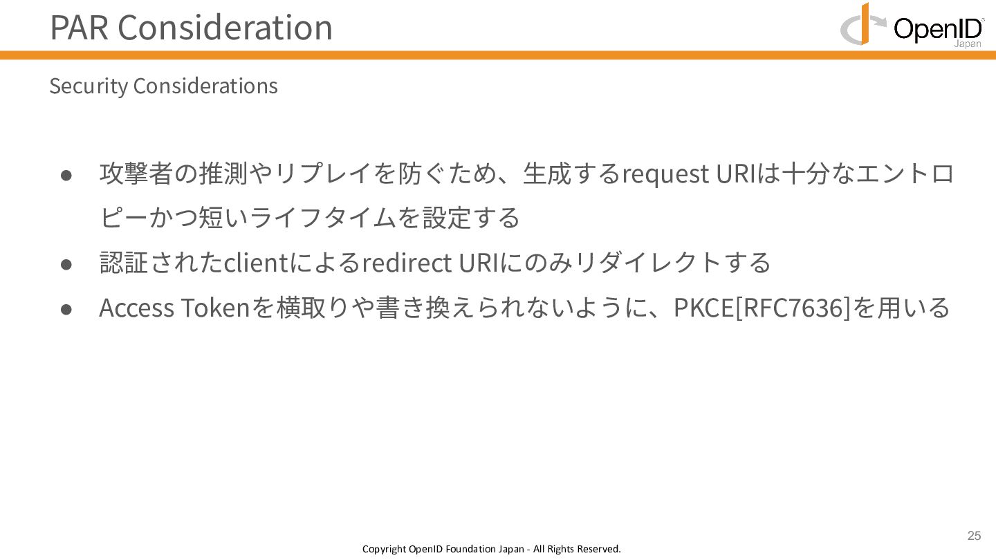 20. Copyright OpenID Foundation Japan - All Rights Reserved. PAR Consideration