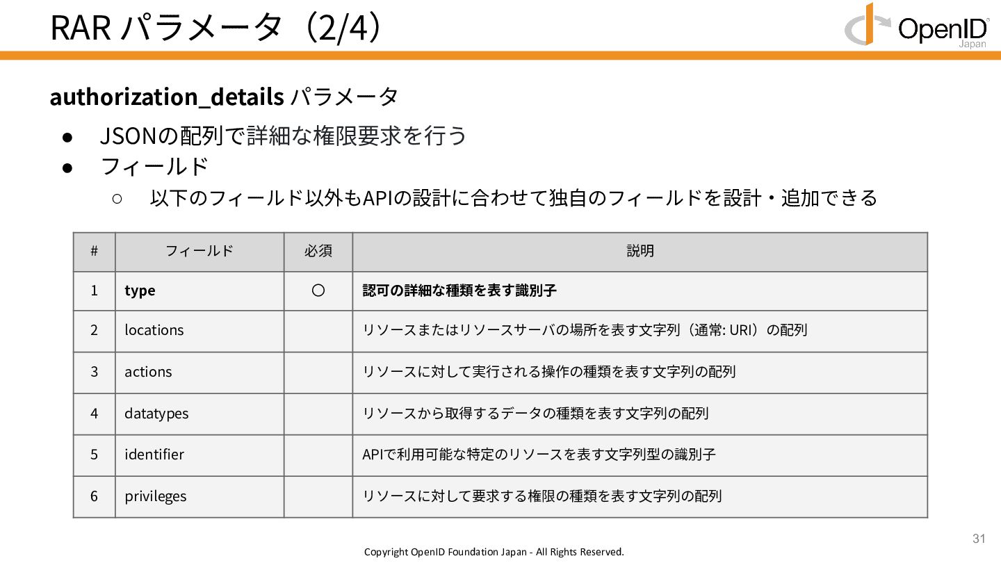 25. Copyright OpenID Foundation Japan - All Rights Reserved. RAR パラメータ(2/4)