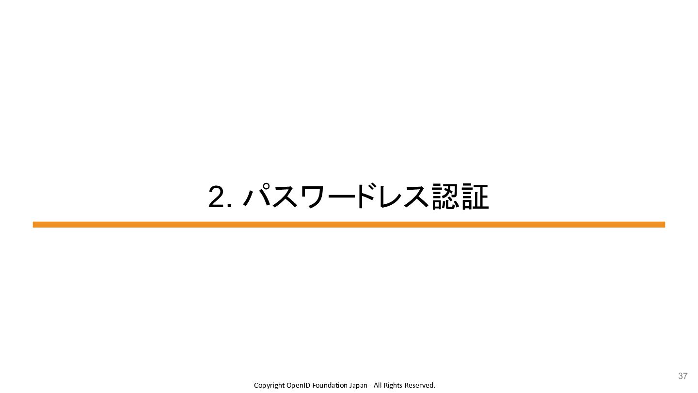 37. Copyright OpenID Foundation Japan - All Rights Reserved. パスワードレス認証の種類 •