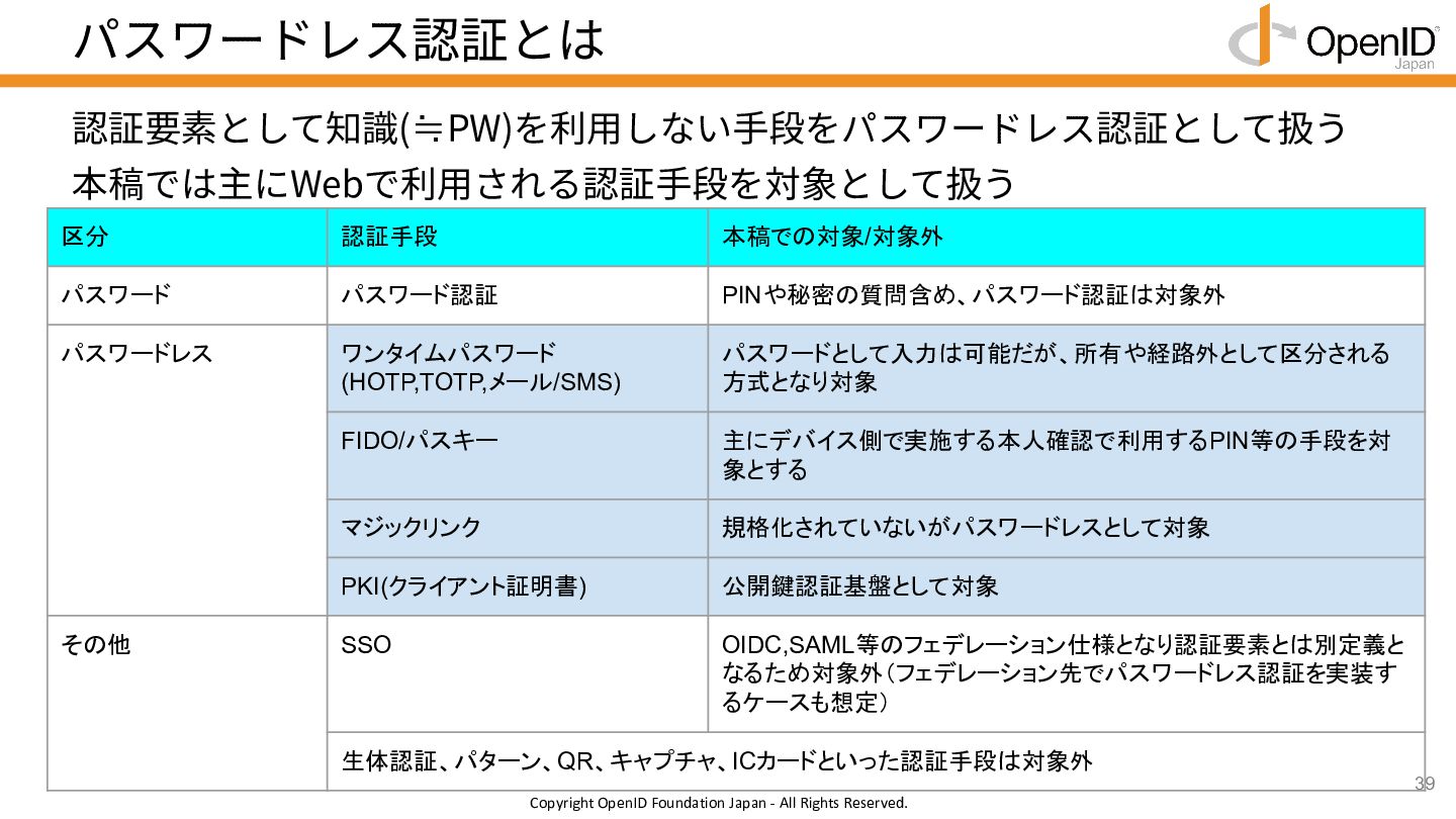 32. Copyright OpenID Foundation Japan - All Rights Reserved. パスワードレス認証とは 39