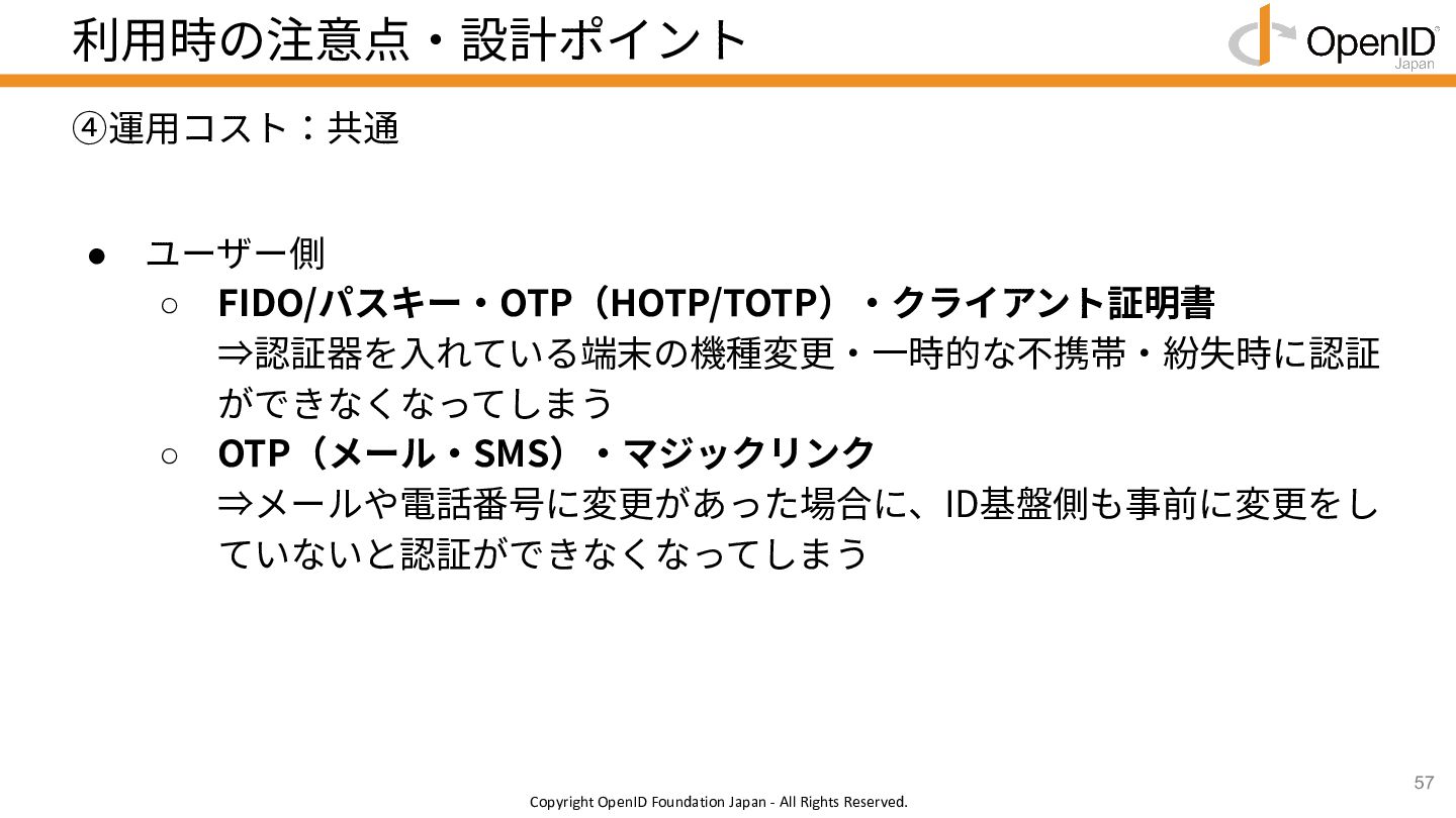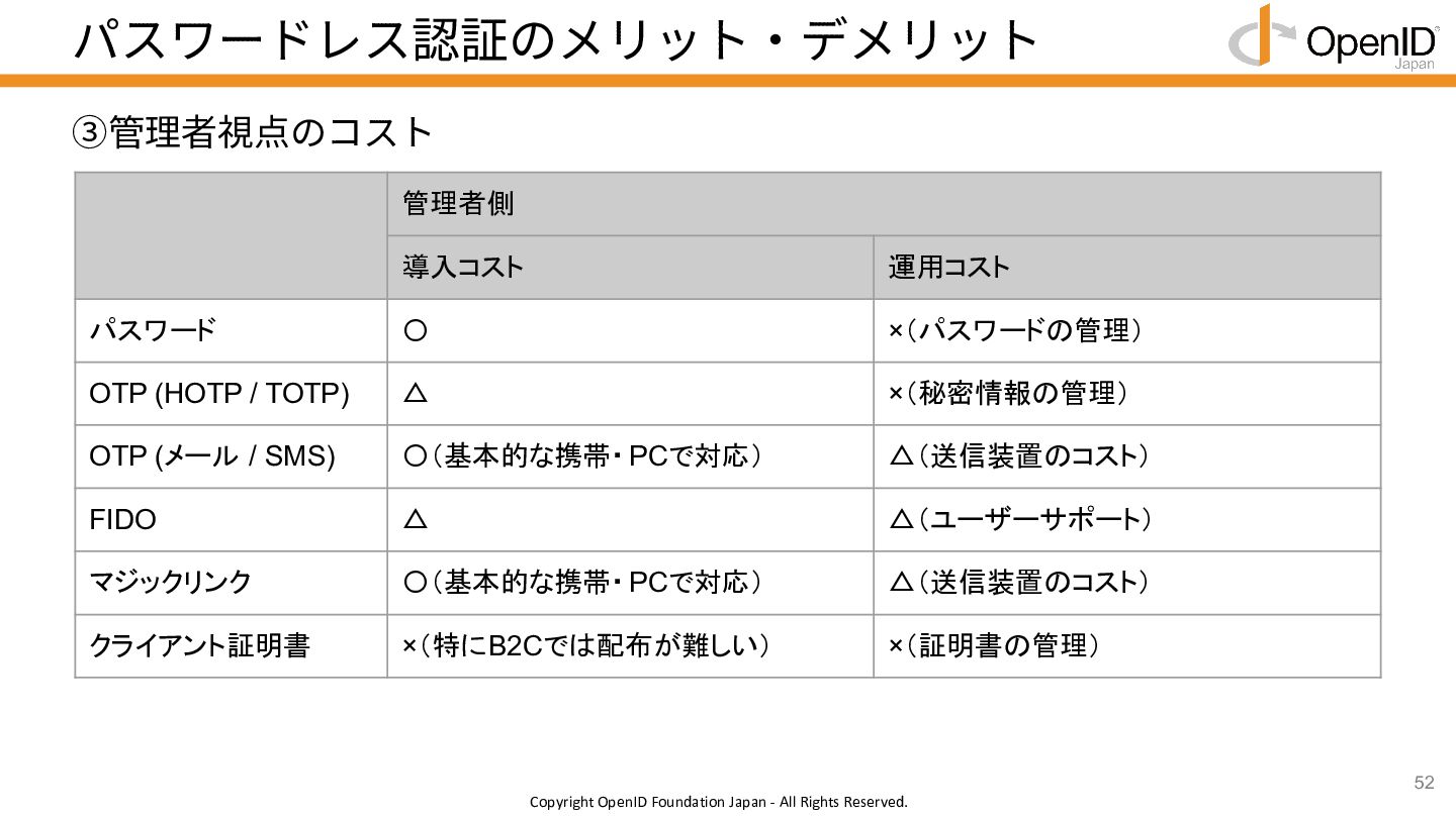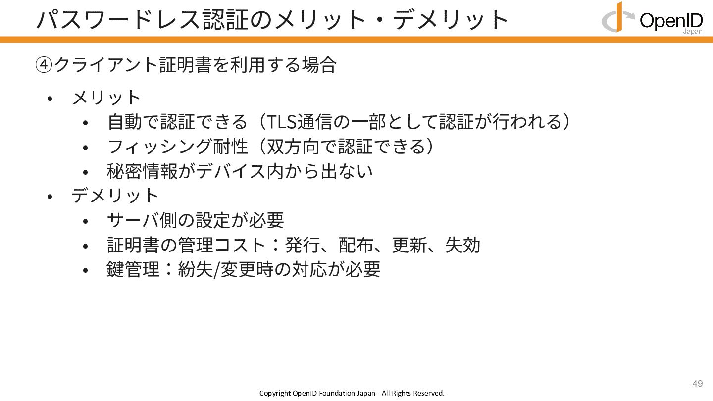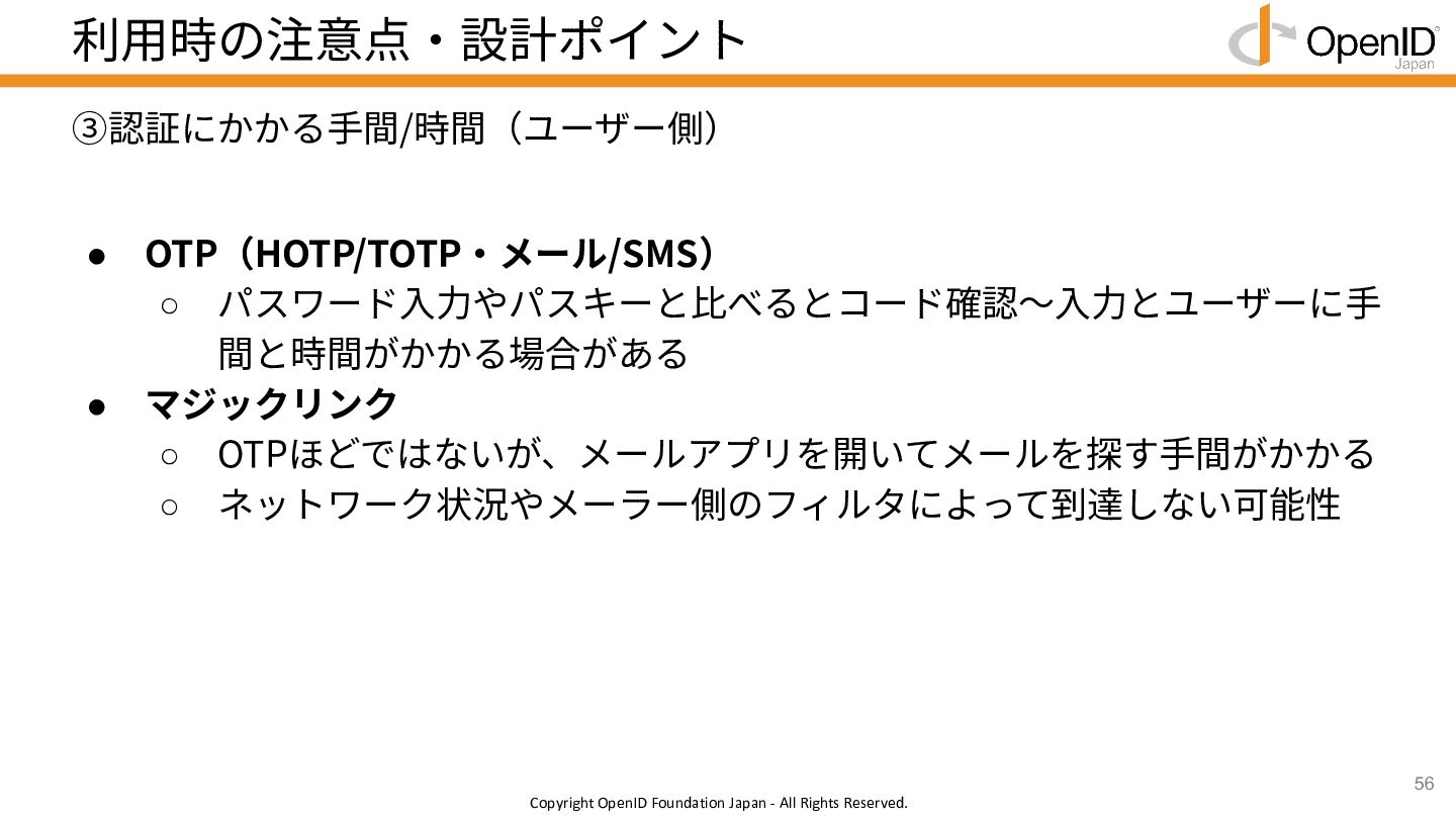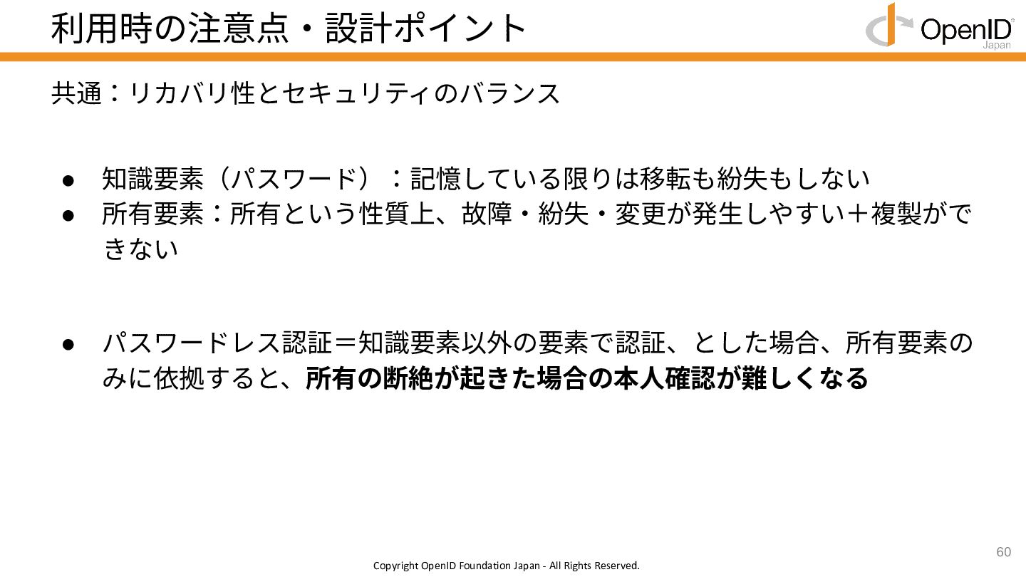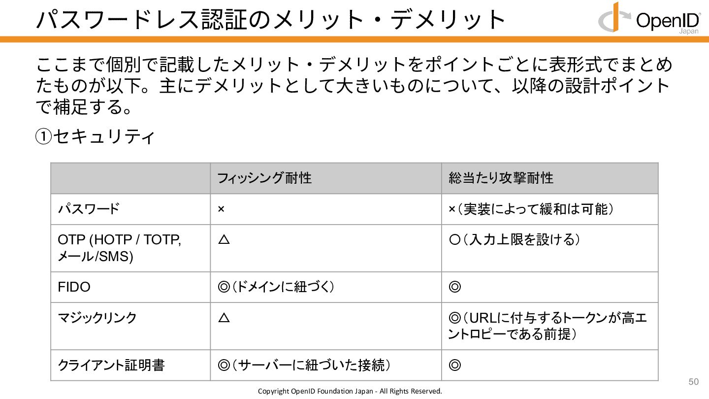 38. Copyright OpenID Foundation Japan - All Rights Reserved. パスワードレス認証のメリット‧デメリット 45