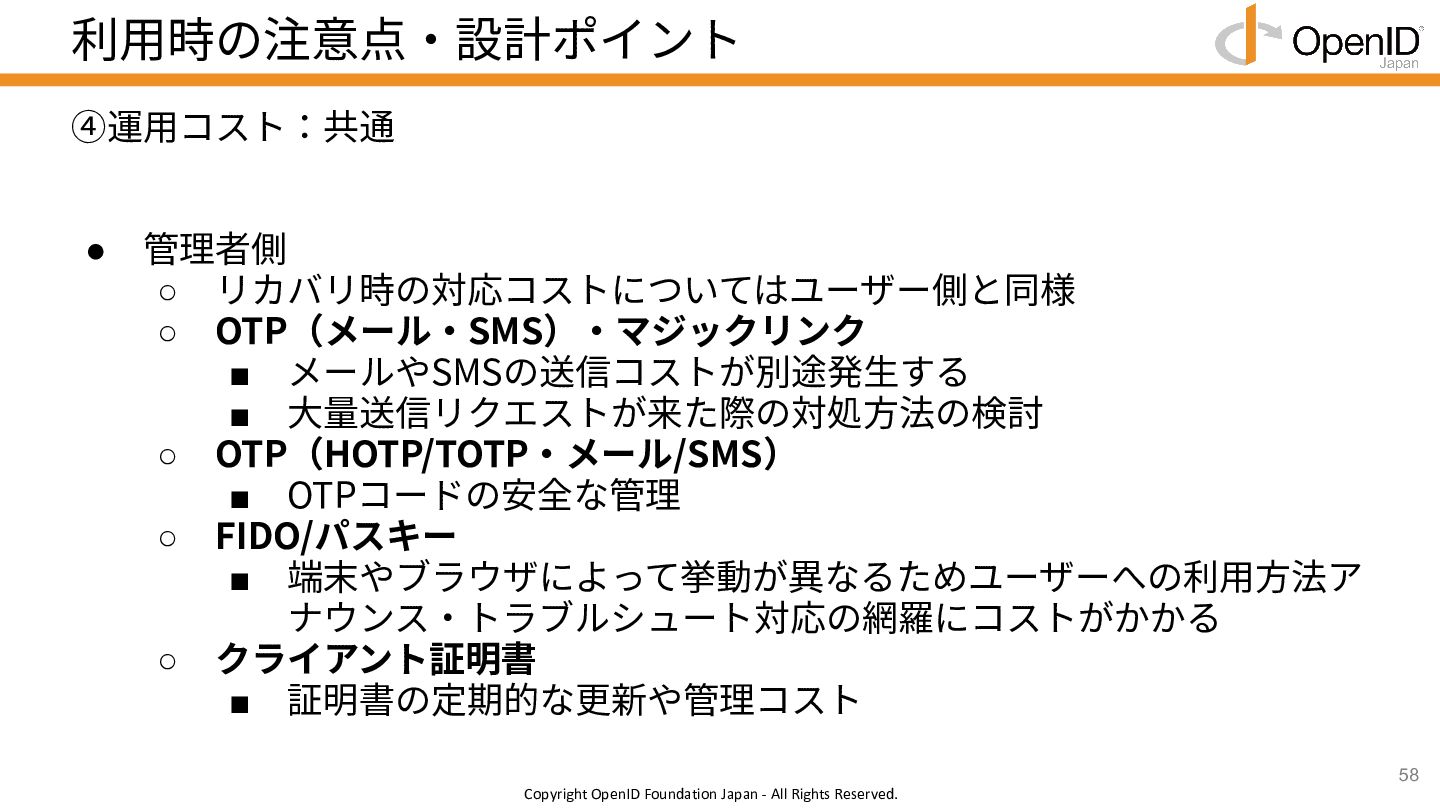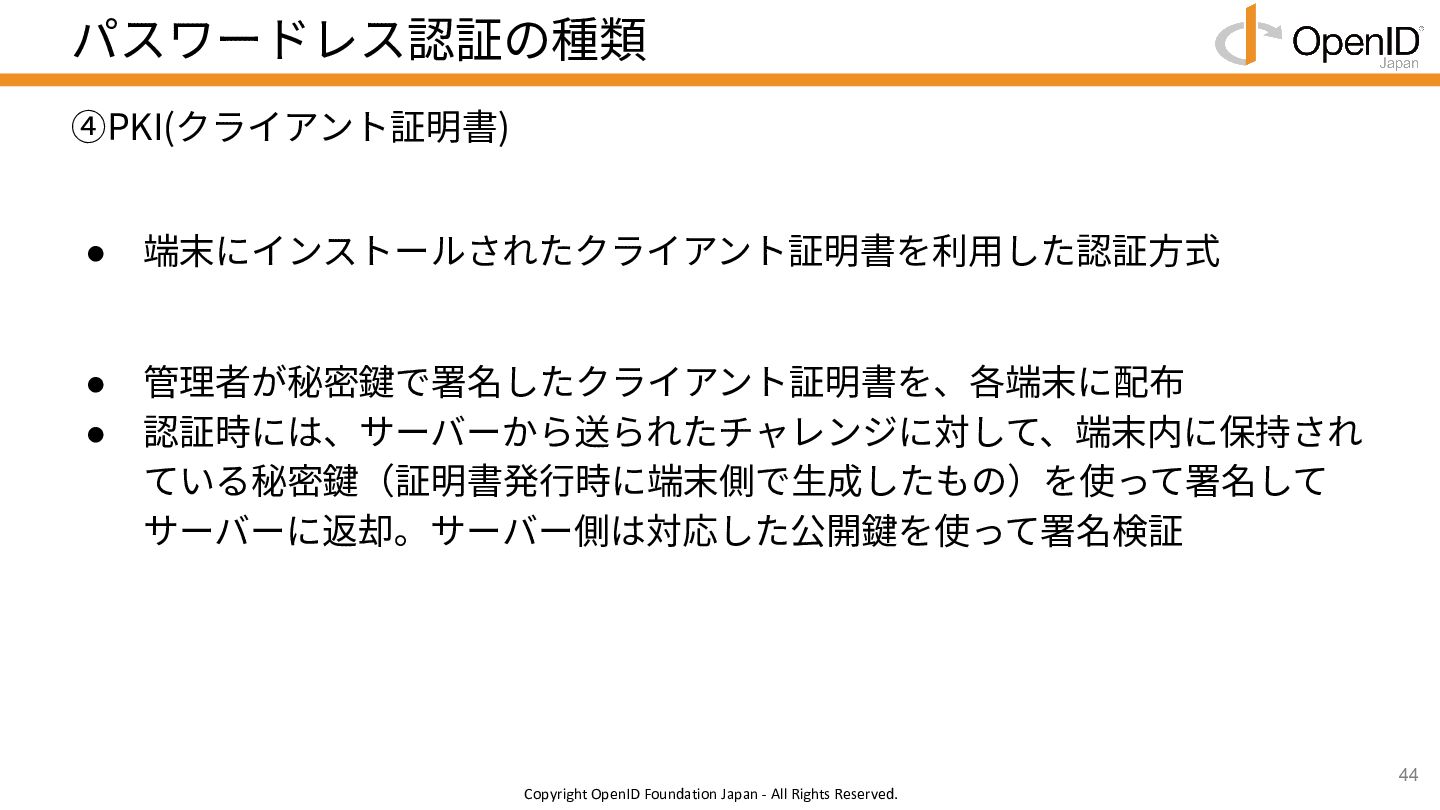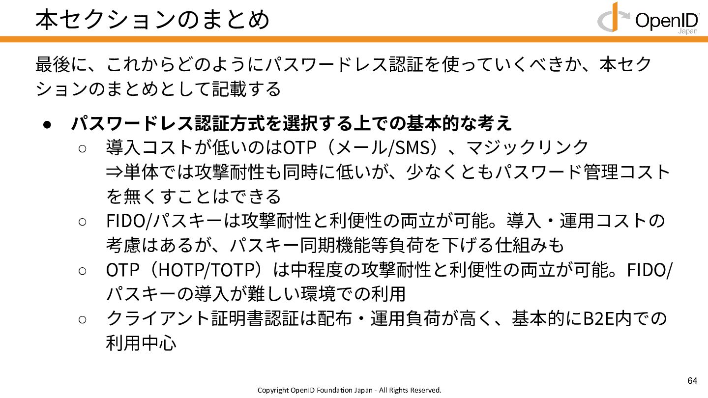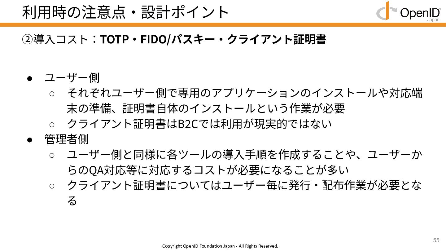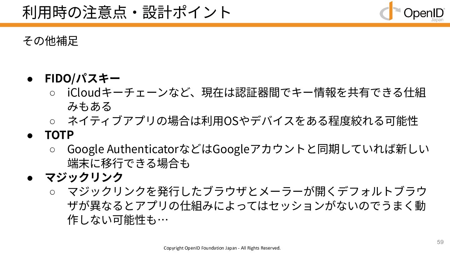 38. Copyright OpenID Foundation Japan - All Rights Reserved. パスワードレス認証のメリット‧デメリット 45