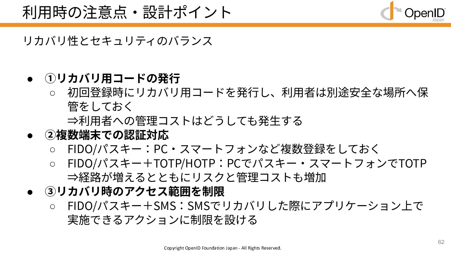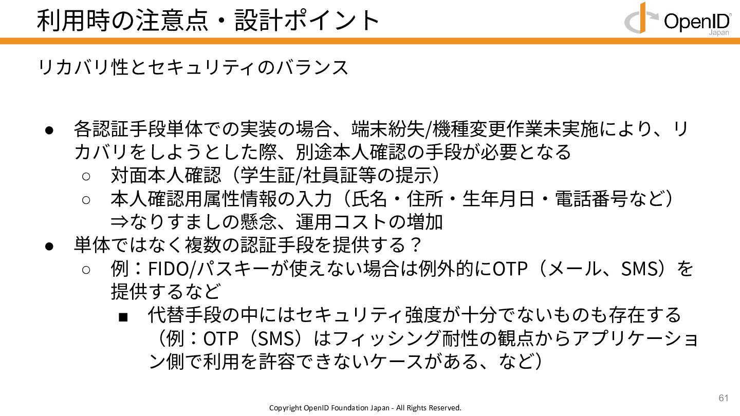 128. Copyright OpenID Foundation Japan - All Rights Reserved. • ⾝元確認プロセスにおける失敗や遅延、難しさ、侵害されたアカウントのリ