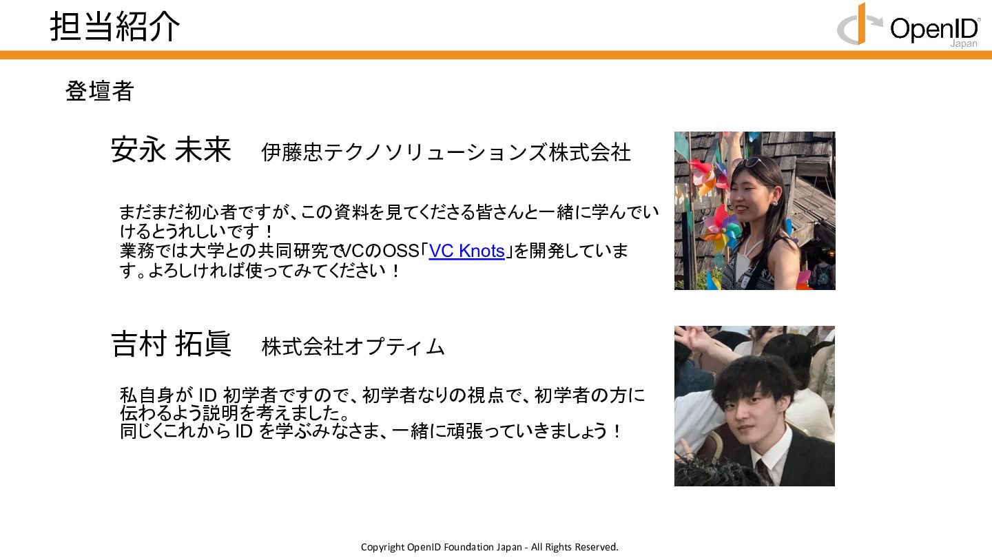 2. Copyright OpenID Foundation Japan - All Rights Reserved. 情報系初学者なので日々学ぶことが多く大変ではありますが、逆 に基礎から積み上げられる貴重な機会と思い、生じた疑問を丁
