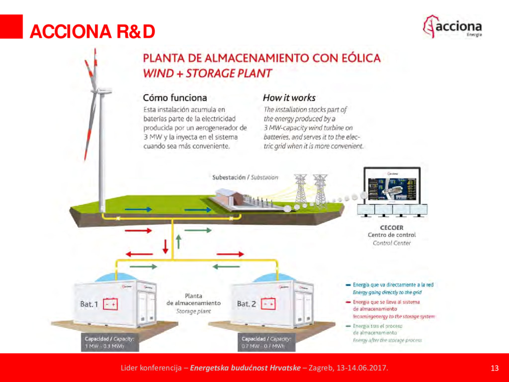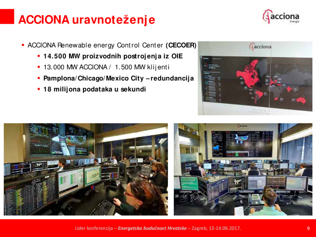 ACCIONA uravnoteženje ACCIONA Renewable energy Control Center (CECOER) 14.500 MW proizvodnih postrojenja iz OIE 13.000 MW ACCIONA / 1.500 MW klijenti Pamplona/Chicago/Mexico City – redundancija 18 milijona podataka u sekundi