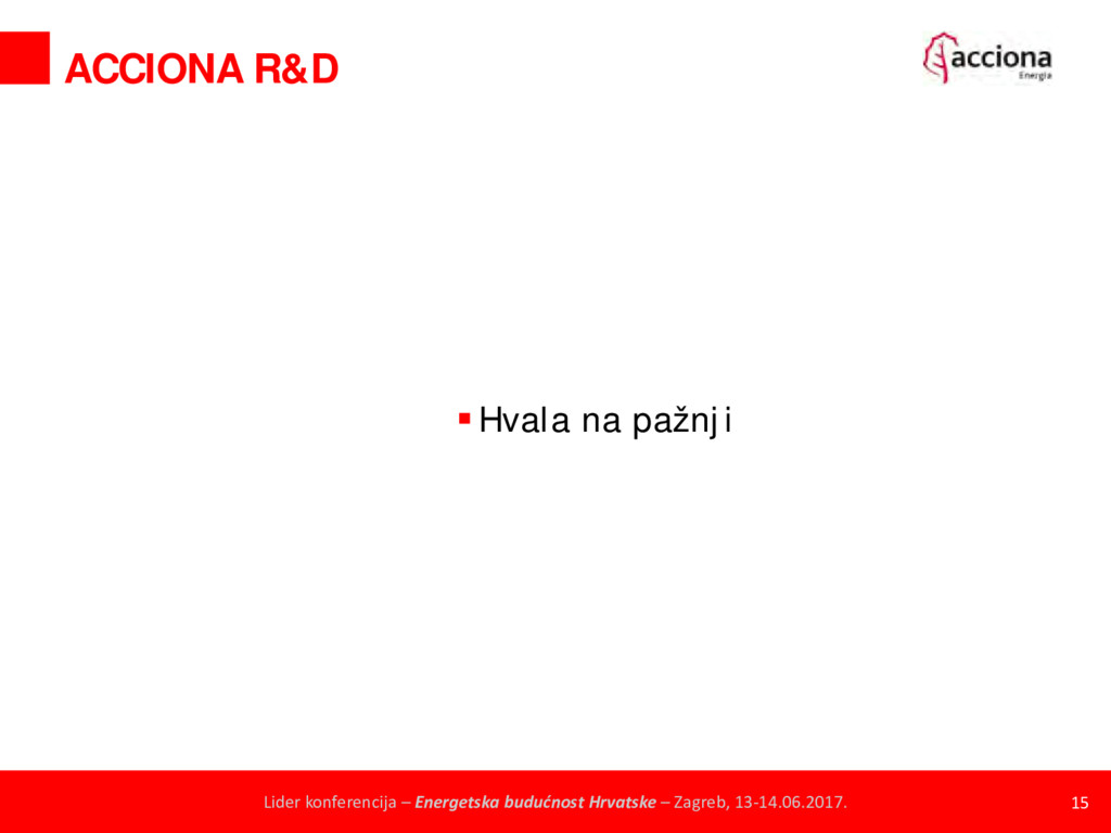 ACCIONA uravnoteženje • Povećanje profitabilnosti postrojenja o Pružatelji usluga o Isporuka energije na tržište pomoćnih usluga • Bolja kontrola proizvodnje i smanjenje odstupanja od predviđenog plana • Povećanje resursa za EE sustav o Povećana sigurnost i stabilnost sustava • Povećanje konkurentnosti i učinkovitosti unutar tržišta pomoćnih usluga • Omogućuje veću integraciju OIE! Prednosti za proizvođače Prednosti za sustav Win‐Win