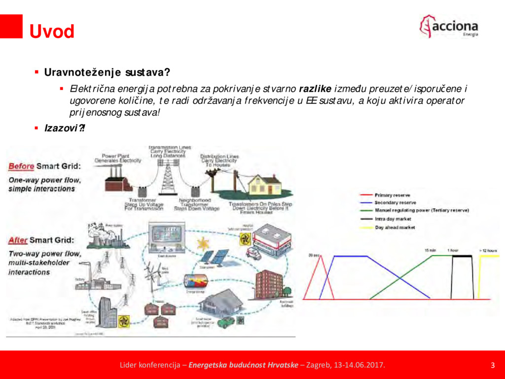 Uvod Uravnoteženje sustava? Električna energija potrebna za pokrivanje stvarno razlike između preuzete/isporučene i ugovorene količine, te radi održavanja frekvencije u EE sustavu, a koju aktivira operator prijenosnog sustava! Izazovi?!