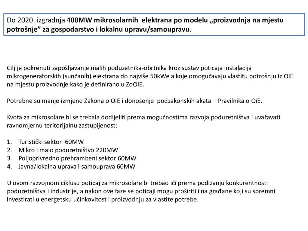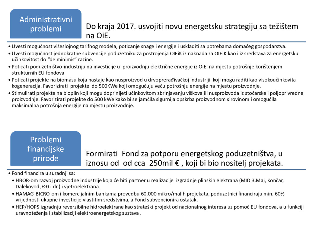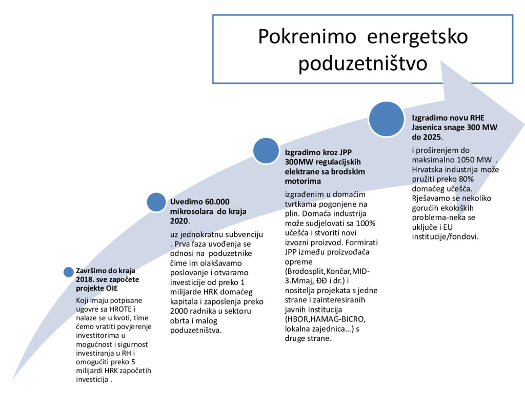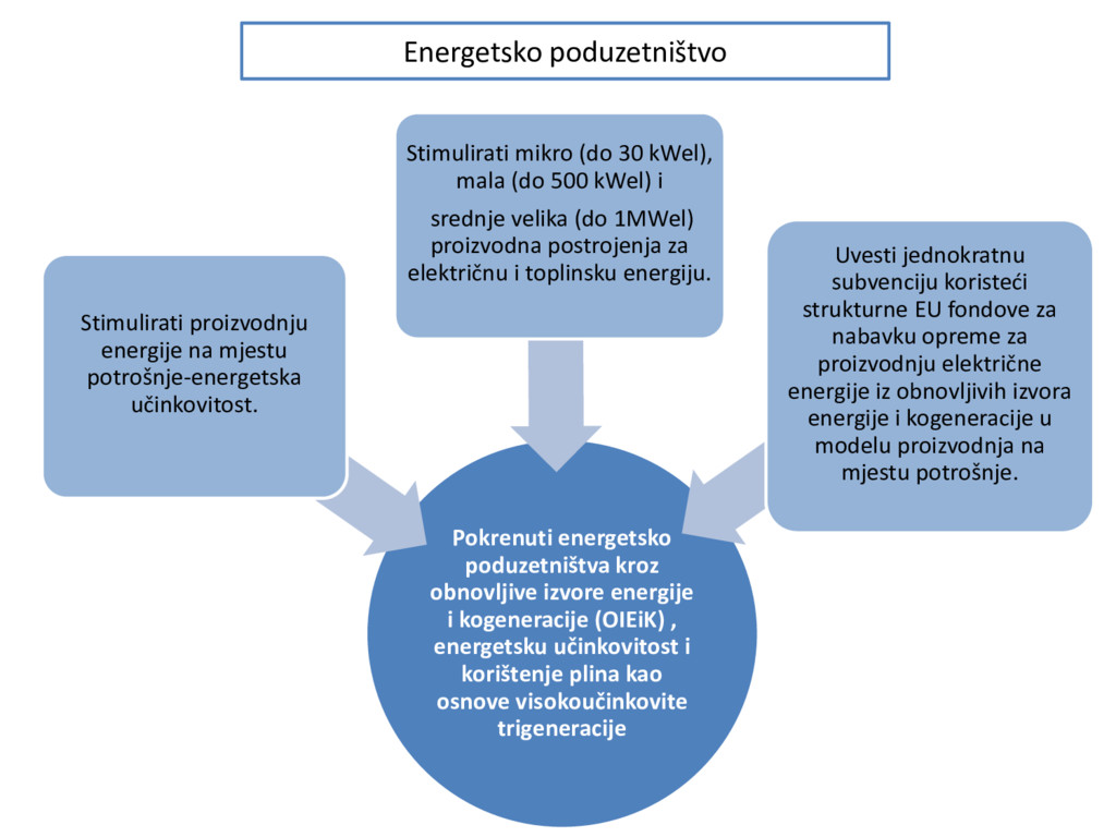 Poduzetništvo i industrija su pokretači novog investicijskog ciklusa u energetici. Osigurat će provedbu tranzicije iz sustava poticanja korištenja obnovljivih izvora energije i kogeneracije (‘feed-in’ tarife) prema budućem sustavu energetskog poduzetništva na osnovi premijskog modela poticanja proizvodnje električne energije iz obnovljivih izvora.