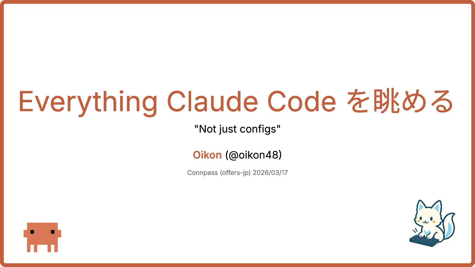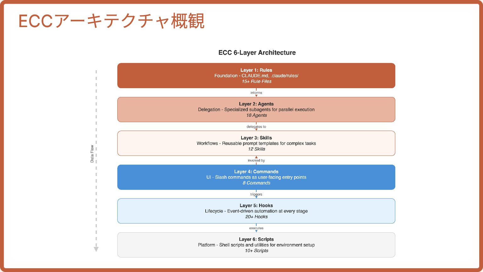 subagents, MCPs, plugins The Longform Guide 上級テクニック: token economics, memory, verification, parallelization The Security Guide セキュリティ: 攻撃ベクター, sandboxing, OWASP, AgentShield The OpenClaw Guide セキュリティ批評: 攻撃面分析, MiniClaw代替案, 実インシデント