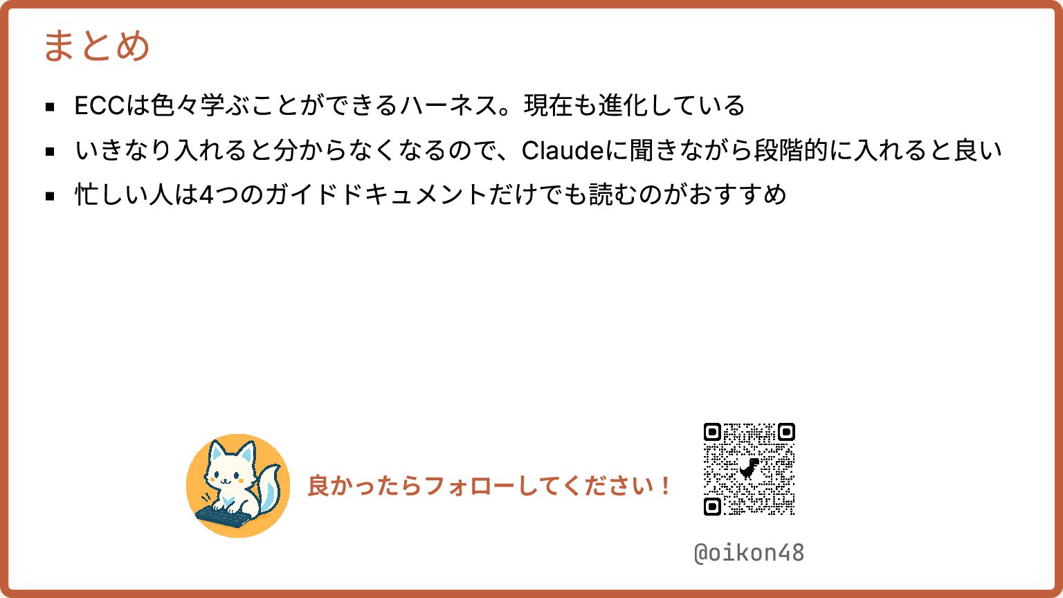 8. ECCガイドシリーズ: 4つの公式ガイド ガイド 位置づけ The Shortform Guide 基礎セットアップ: skills, hooks,