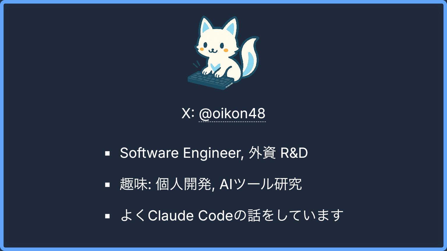 X: @oikon48 Software Engineer, 外資 R&D 趣味: 個人開発, AIツール研究 よくClaude